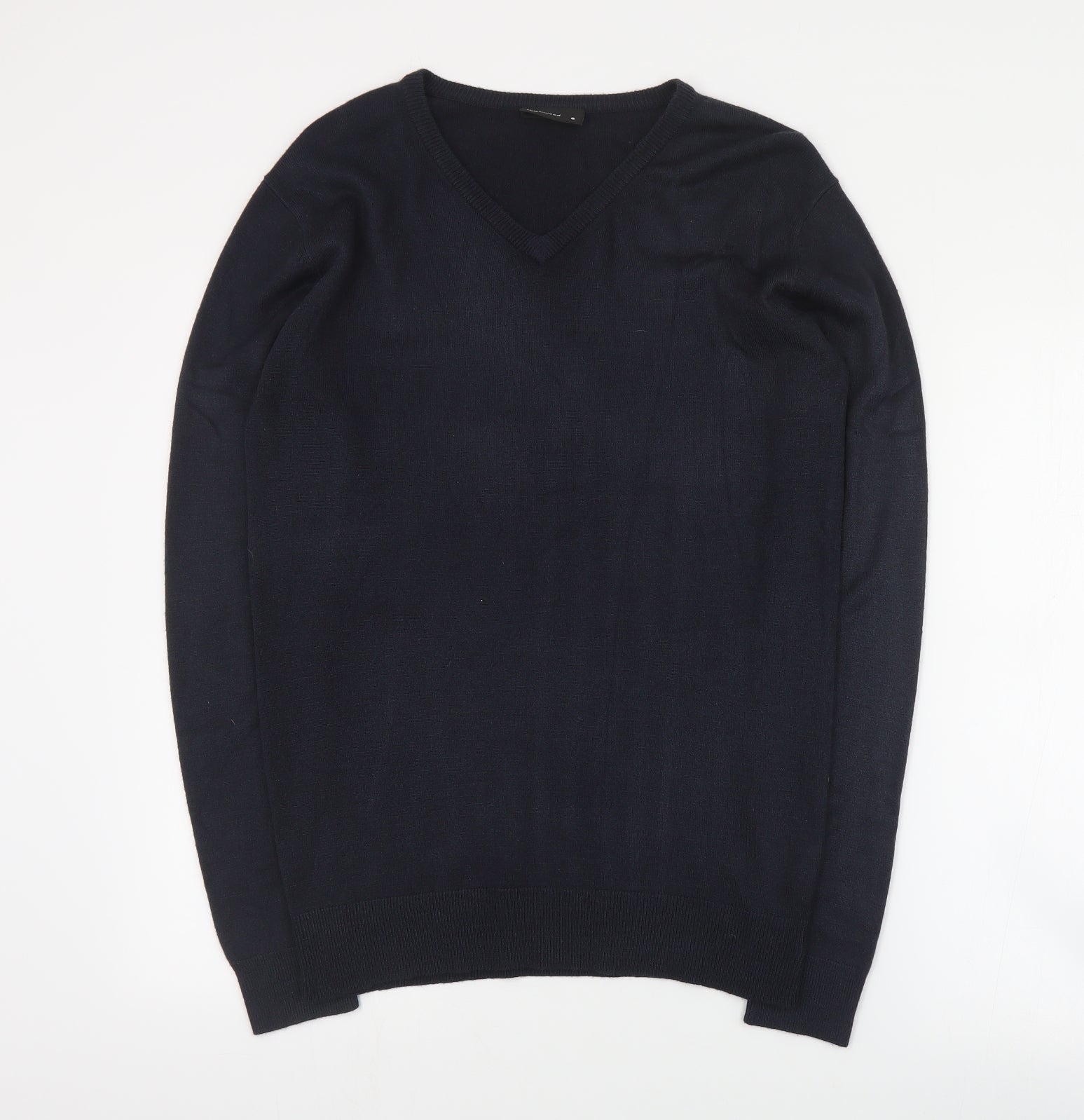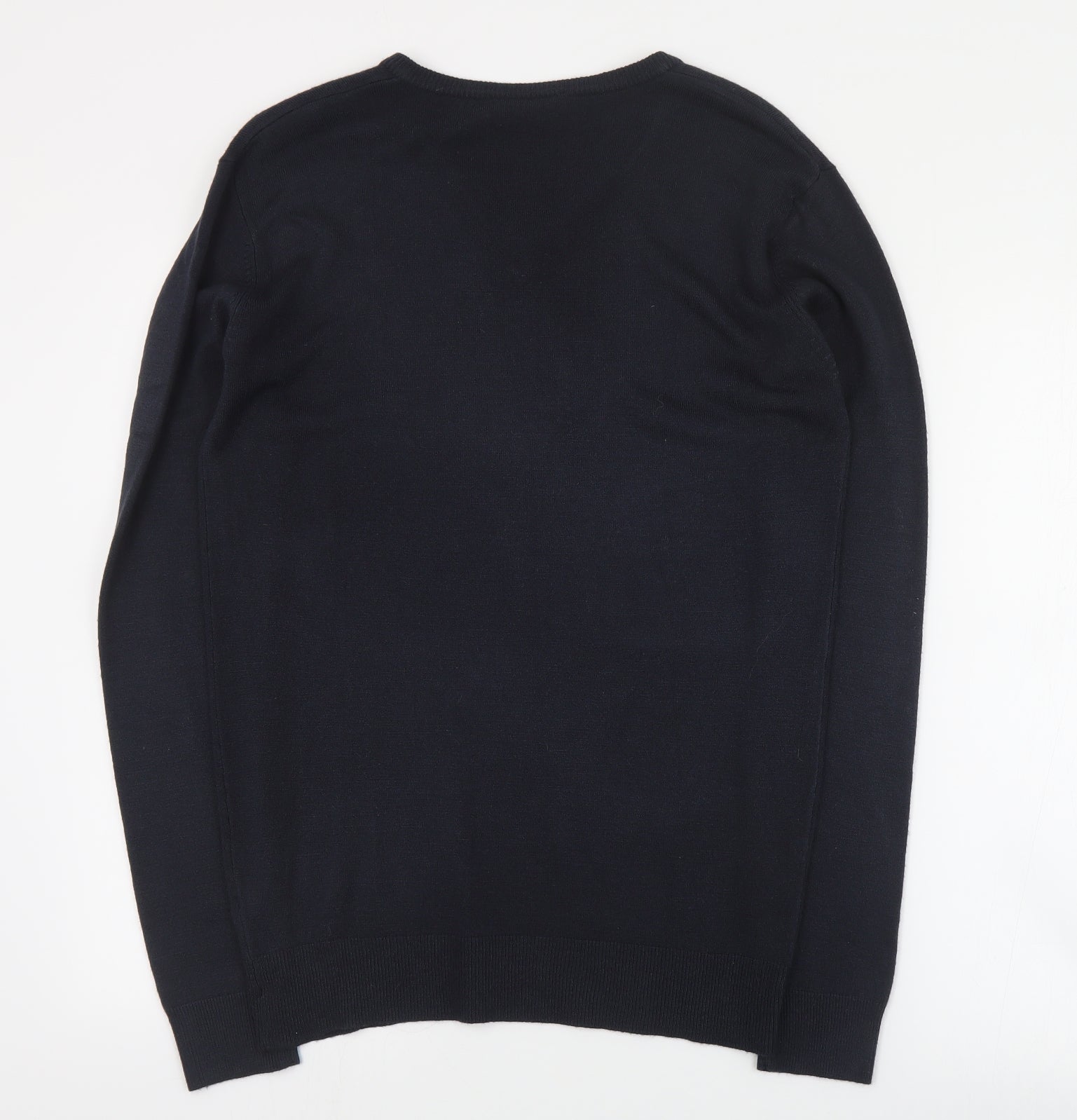 Cedar Wood State Mens Blue V-Neck Cotton Pullover Jumper Size S
