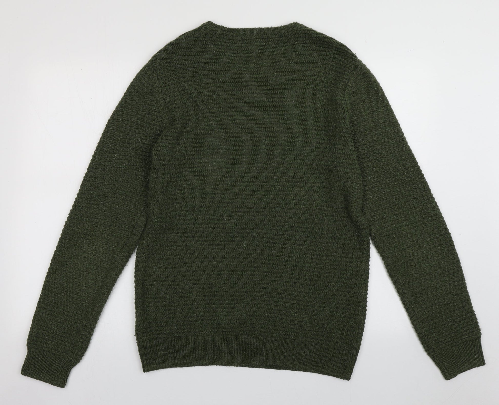 Cedar Wood State Mens Green Crew Neck Acrylic Pullover Jumper Size M