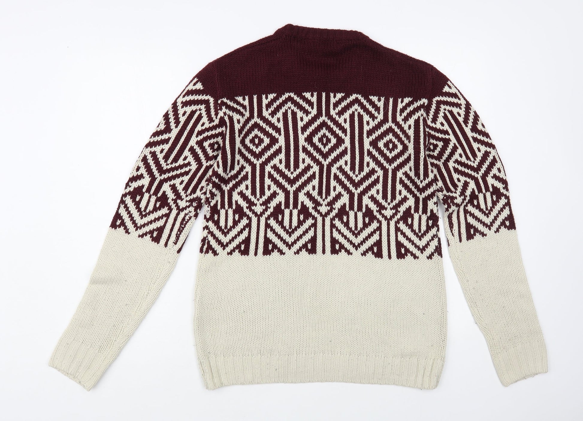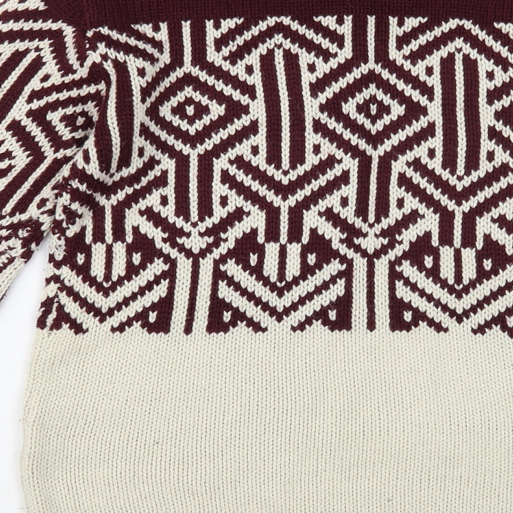 Cedar Wood State Mens Grey Crew Neck Geometric Acrylic Pullover Jumper Size S
