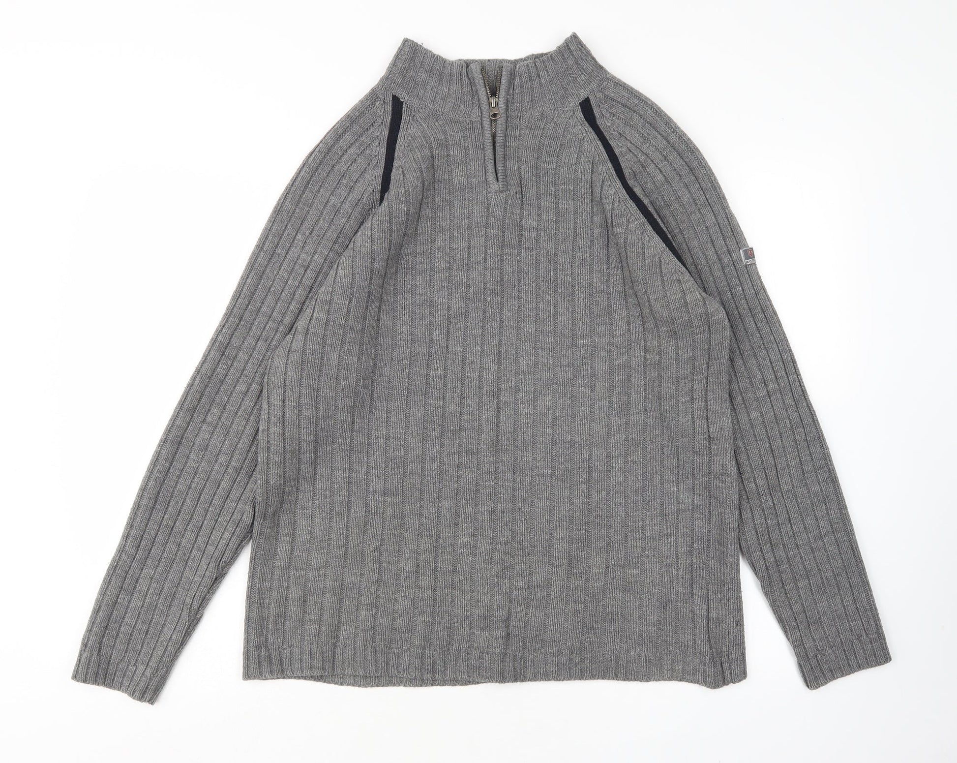 Cedar Wood State Mens Grey Mock Neck Acrylic Pullover Jumper Size S