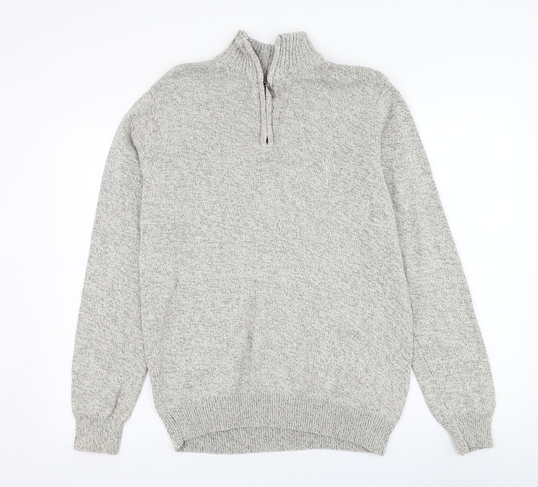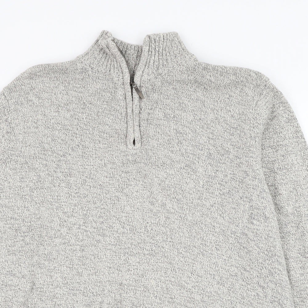 Cedar Wood State Mens Grey Mock Neck Cotton Henley Jumper Size M