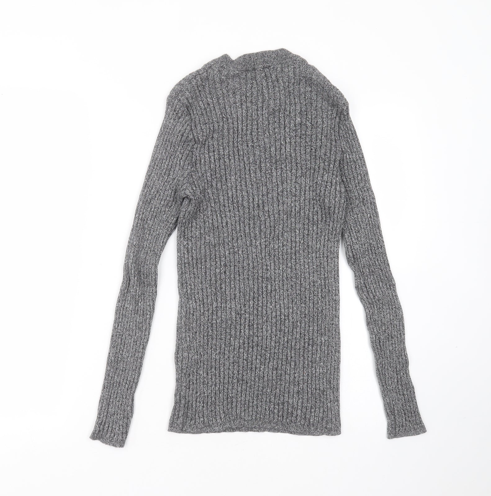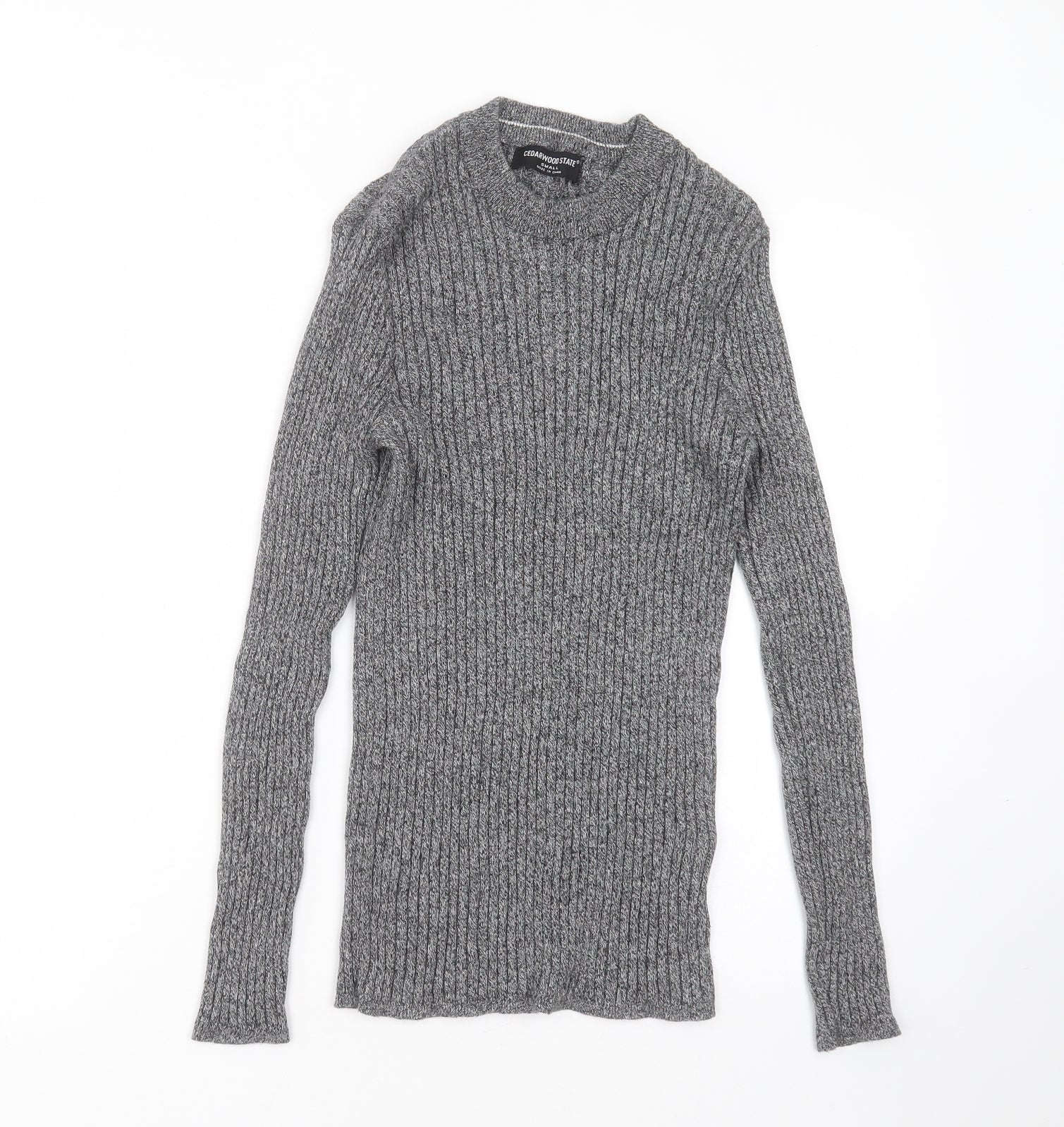 Cedar Wood State Mens Grey Round Neck Striped Cotton Pullover Jumper Size S