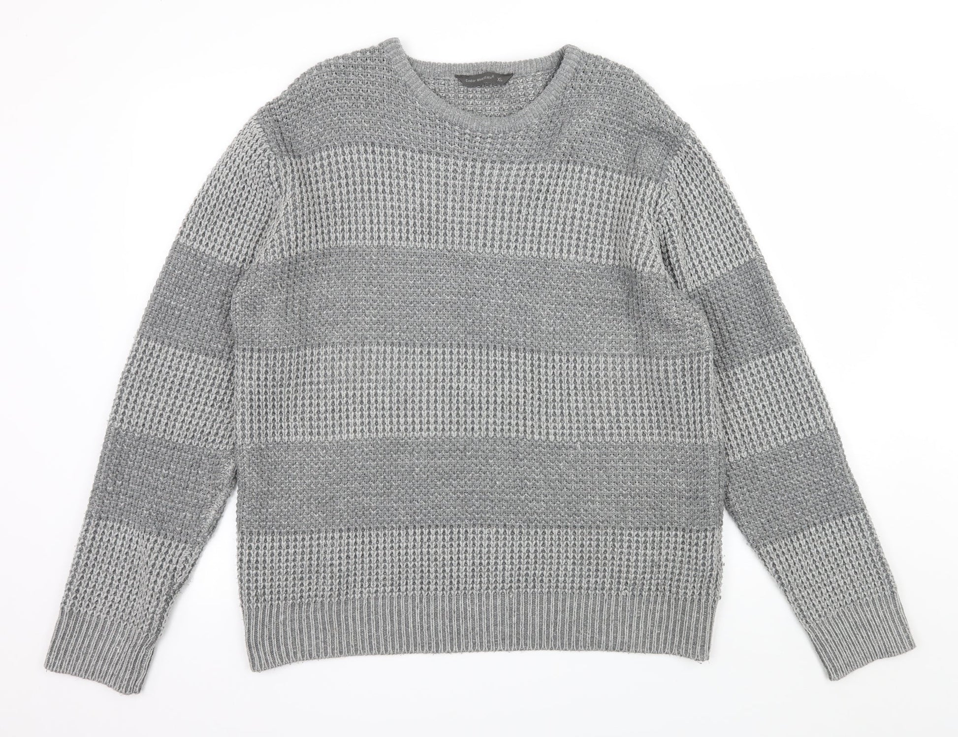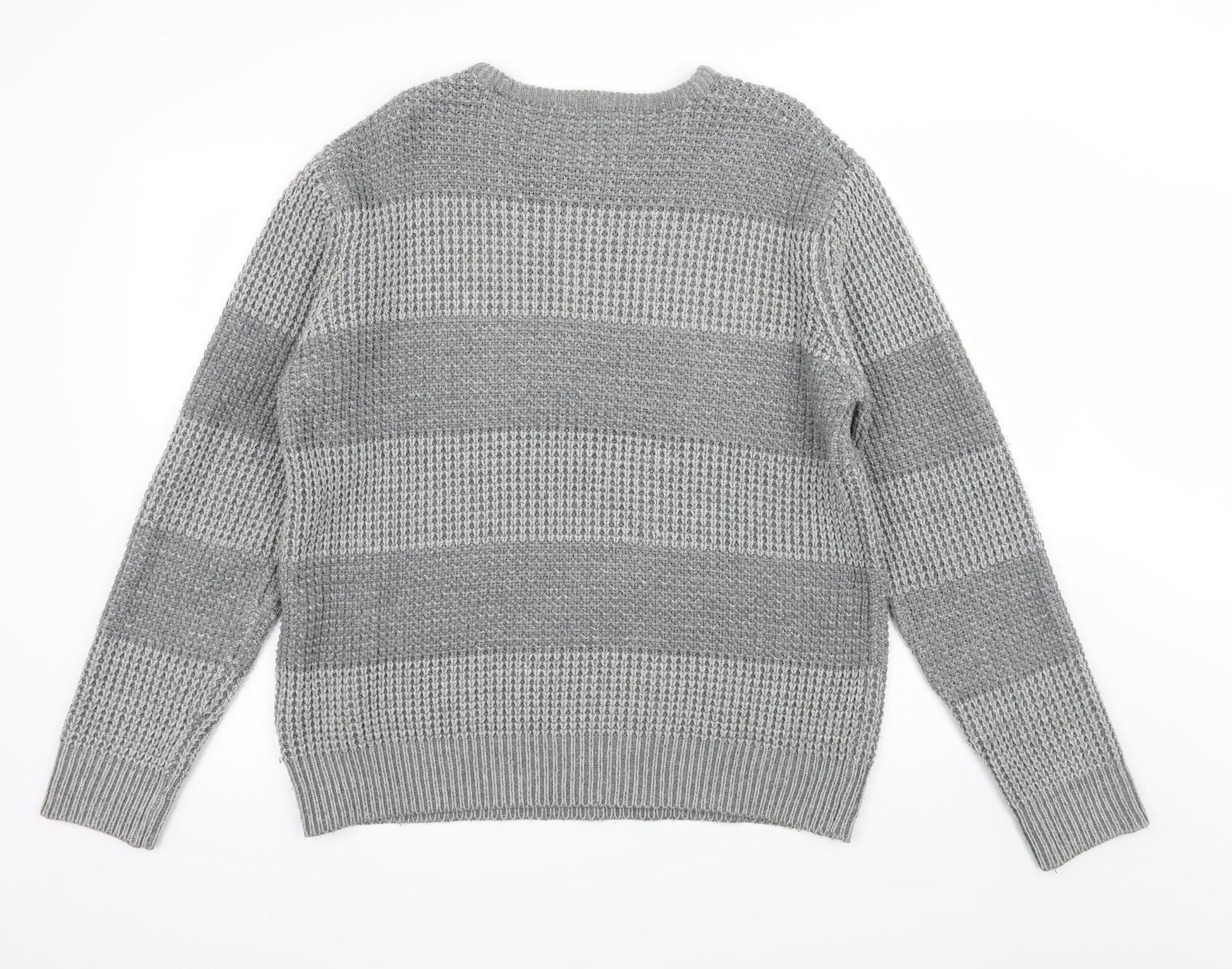 Cedar Wood State Mens Grey Striped Knit Pullover Jumper Size XL