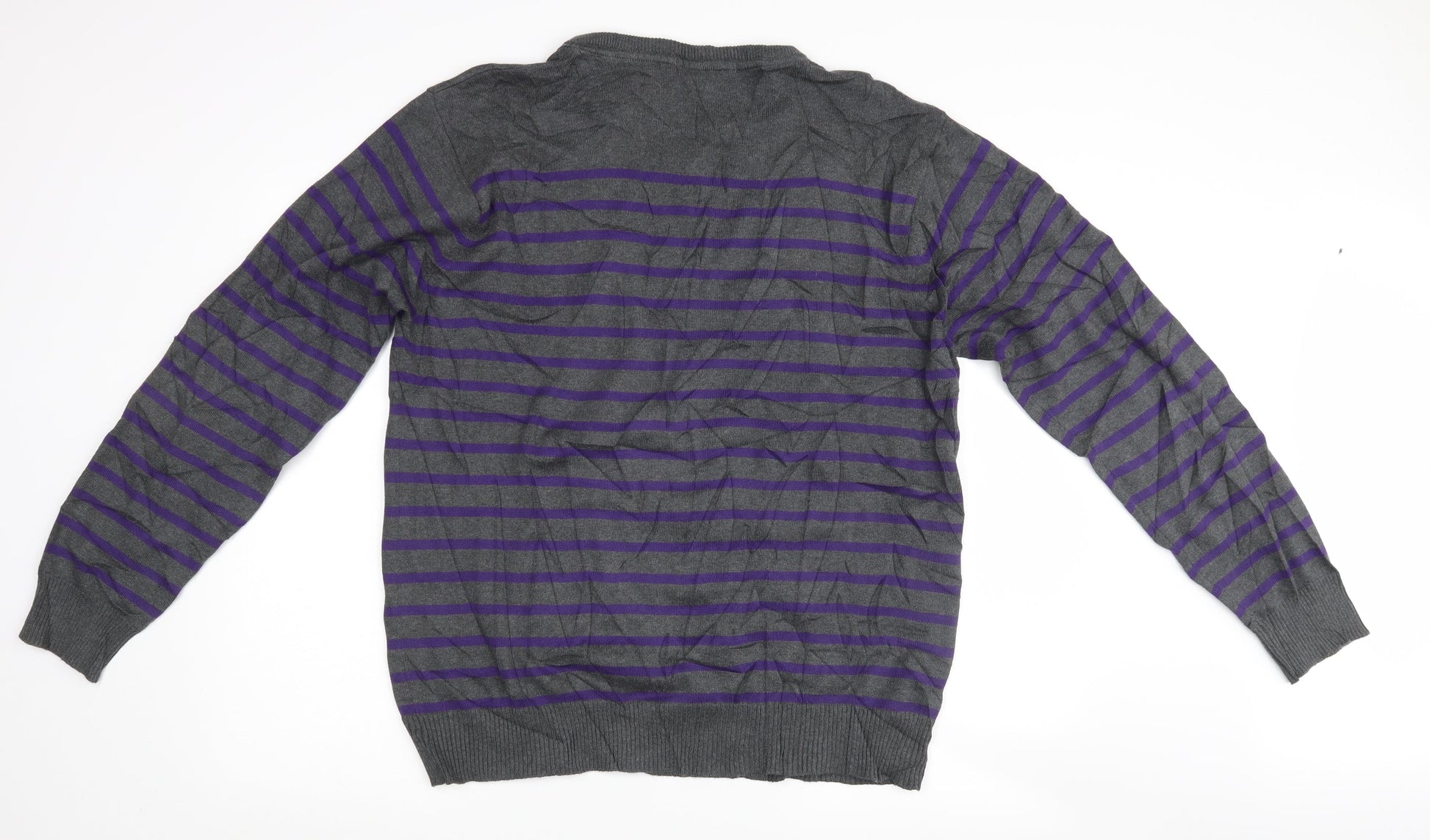 Cedar Wood State Mens Grey Striped Pullover Jumper Size L