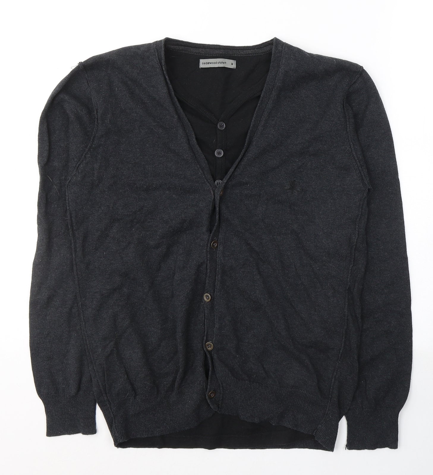 Cedar Wood State Mens Grey V-Neck Polyester Pullover Jumper Size M