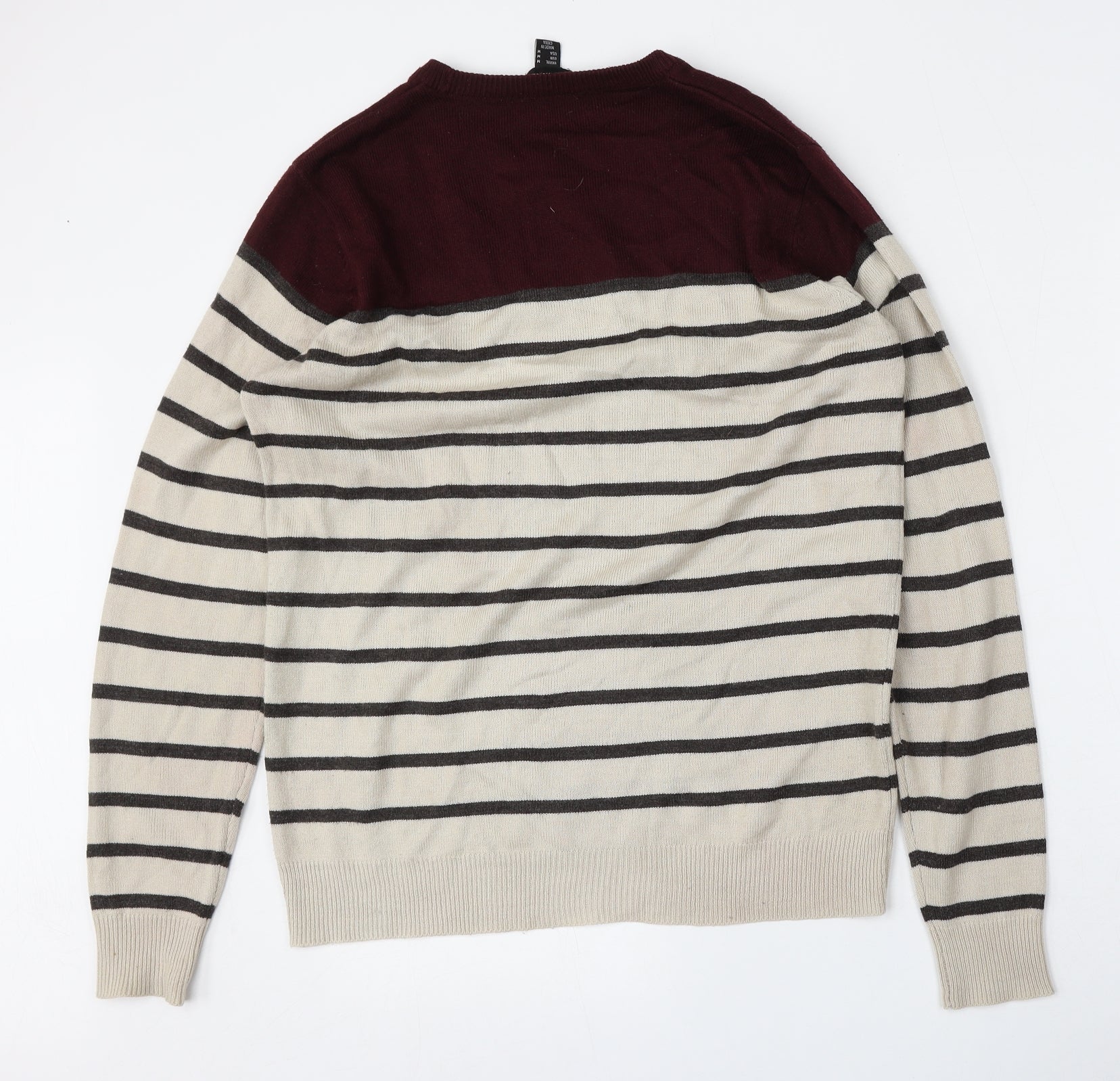Cedar Wood State Mens Multicoloured Round Neck Striped Acrylic Pullover Jumper Size M