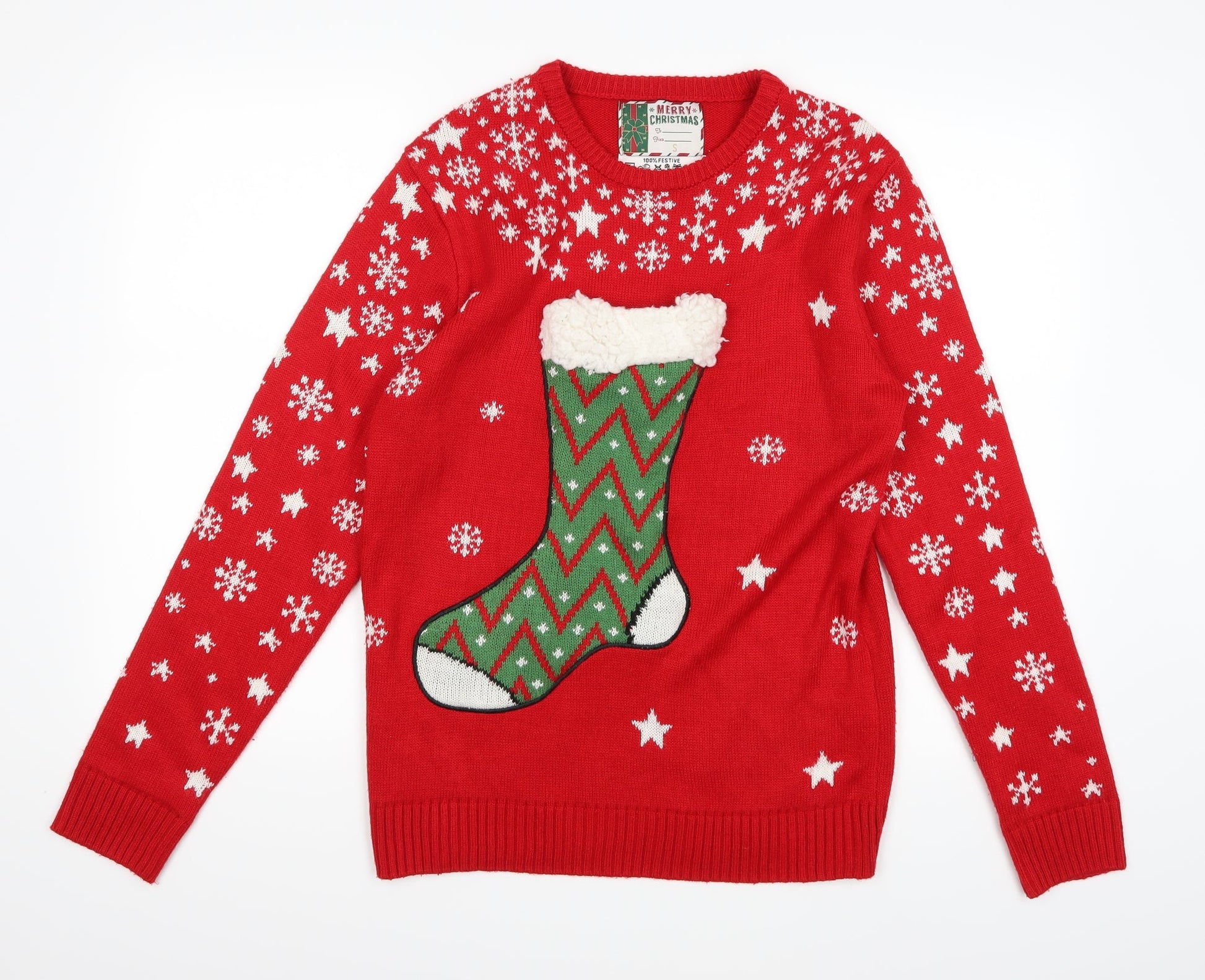 Cedar Wood State Mens Red Knit Pullover Jumper Size S - Christmas