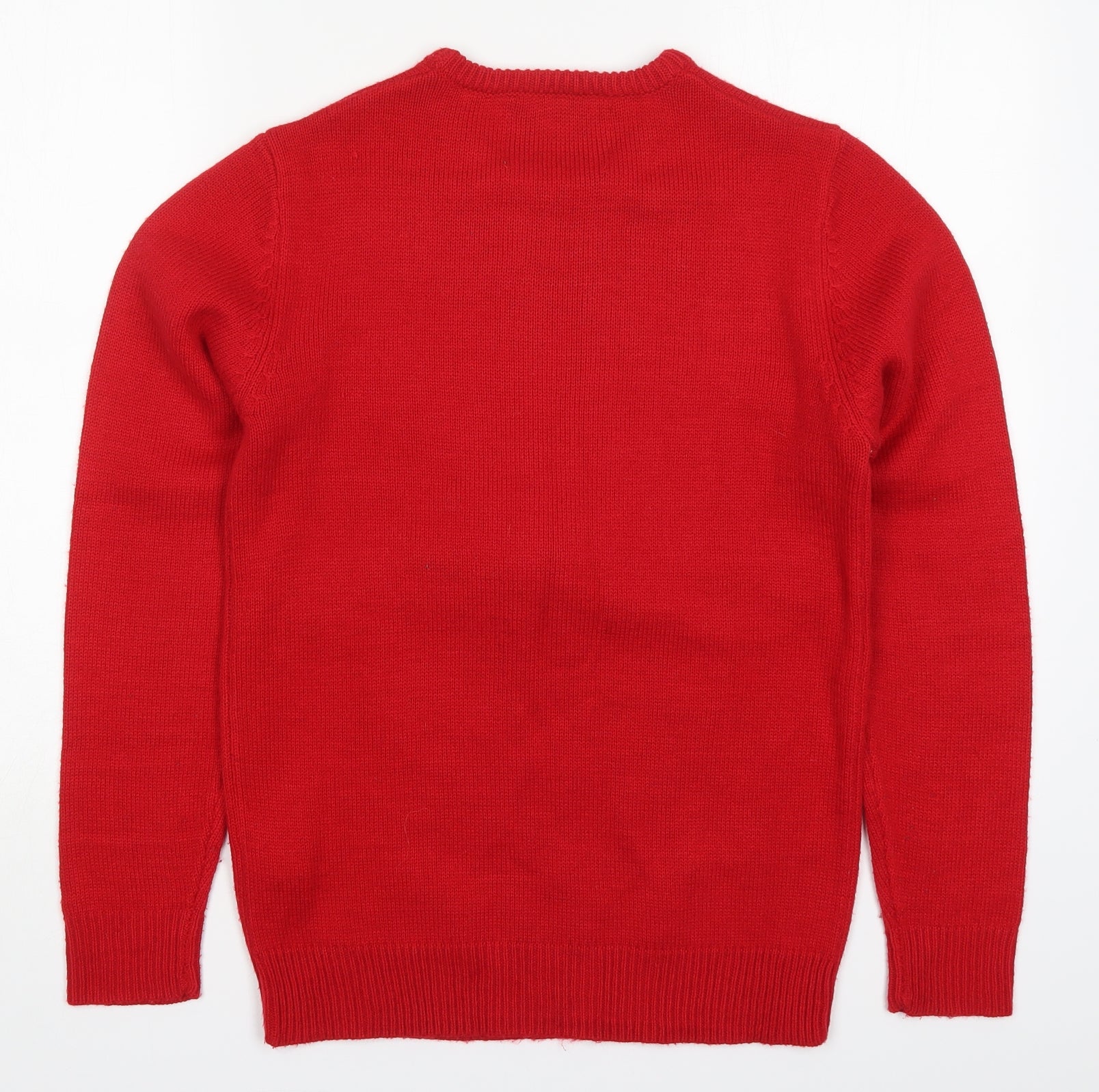 Cedar Wood State Mens Red Round Neck Acrylic Pullover Jumper Size XS - Rudolph Christmas