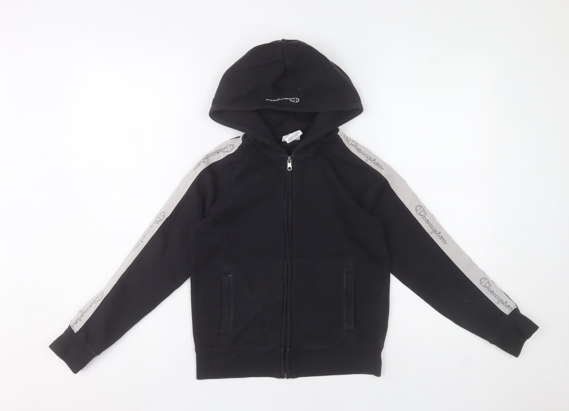 Champion Boys Black Full Zip Hoodie 9-10 Years Cotton Blend Logo Trim