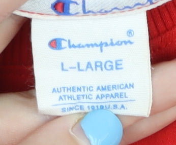 Champion Women’s Red Cotton Pullover Sweatshirt L Logo Sportswear