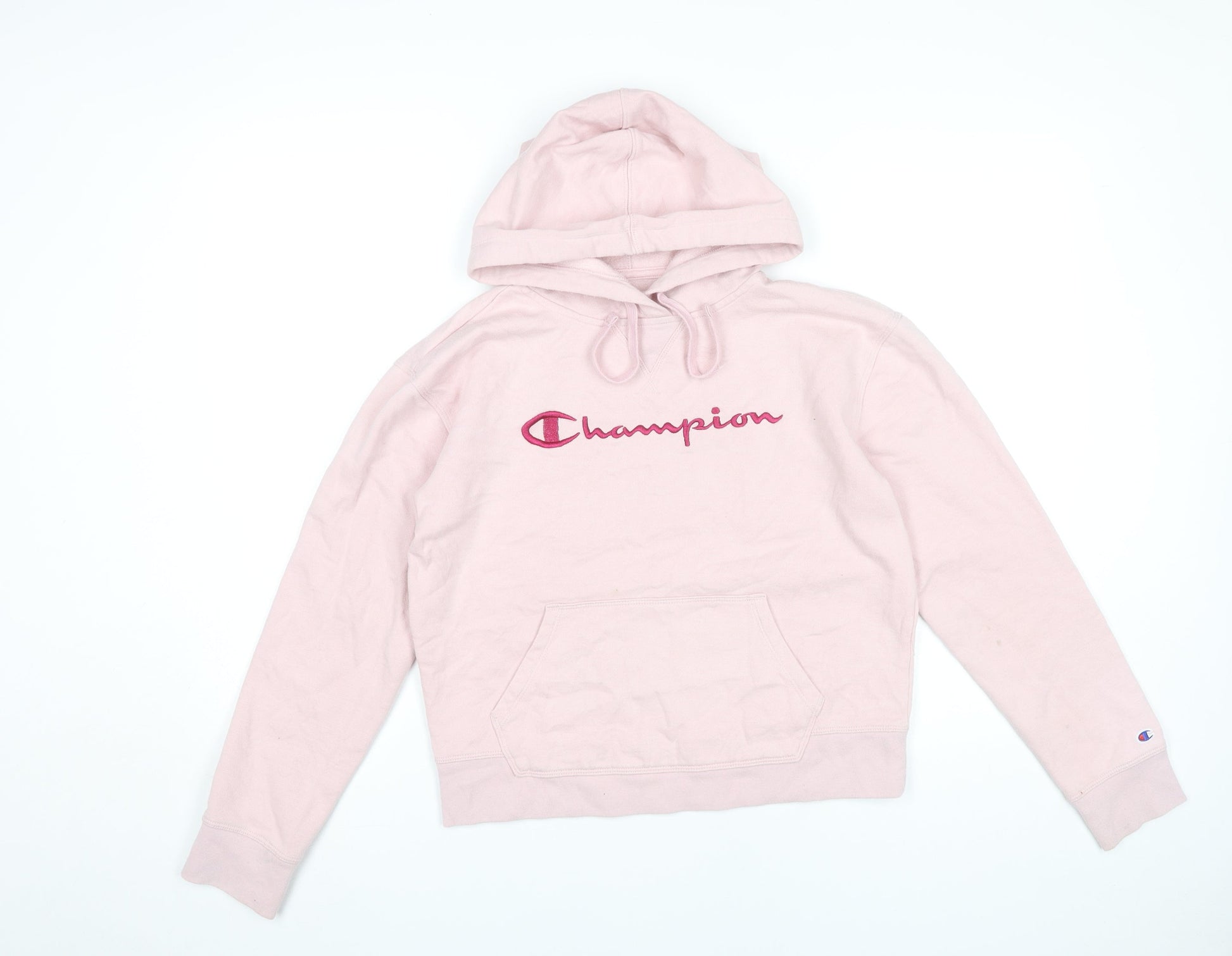 Champion Womens Pink Hoodie Sweatshirt Small Logo Embroidered
