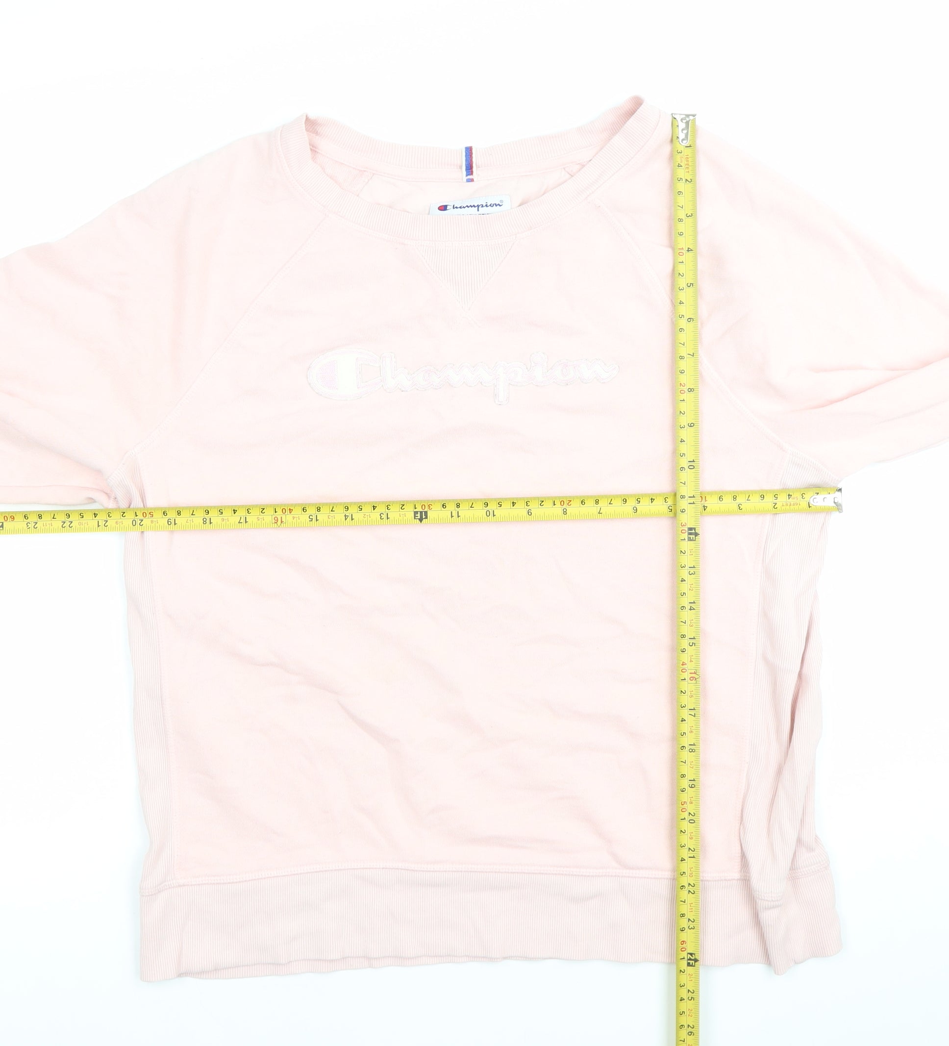 Champion Womens Pink Pullover Sweatshirt L Logo Embroidered Casual