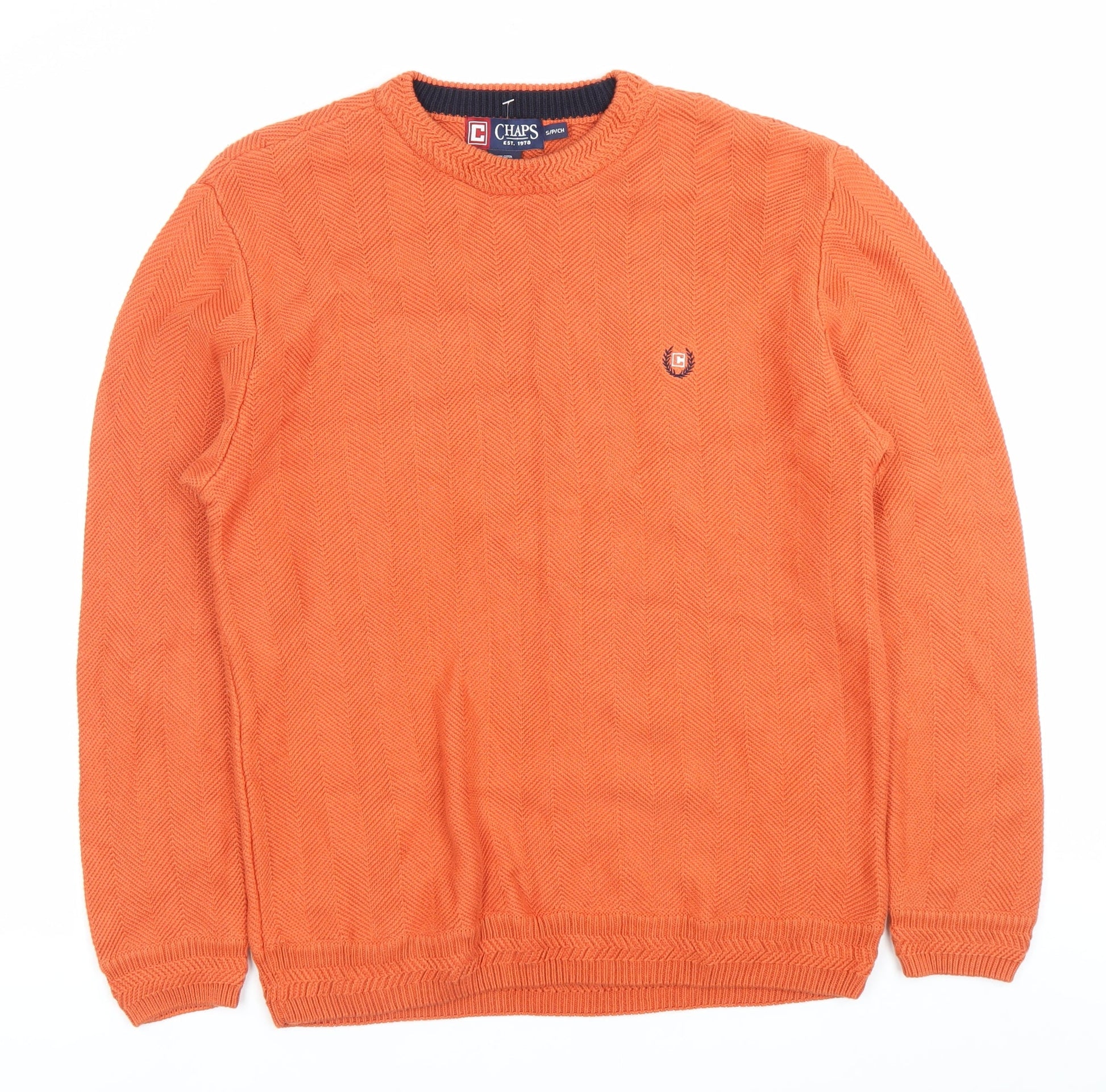 Chaps Men's Orange Knit Cotton Pullover Jumper Size S Crew Neck