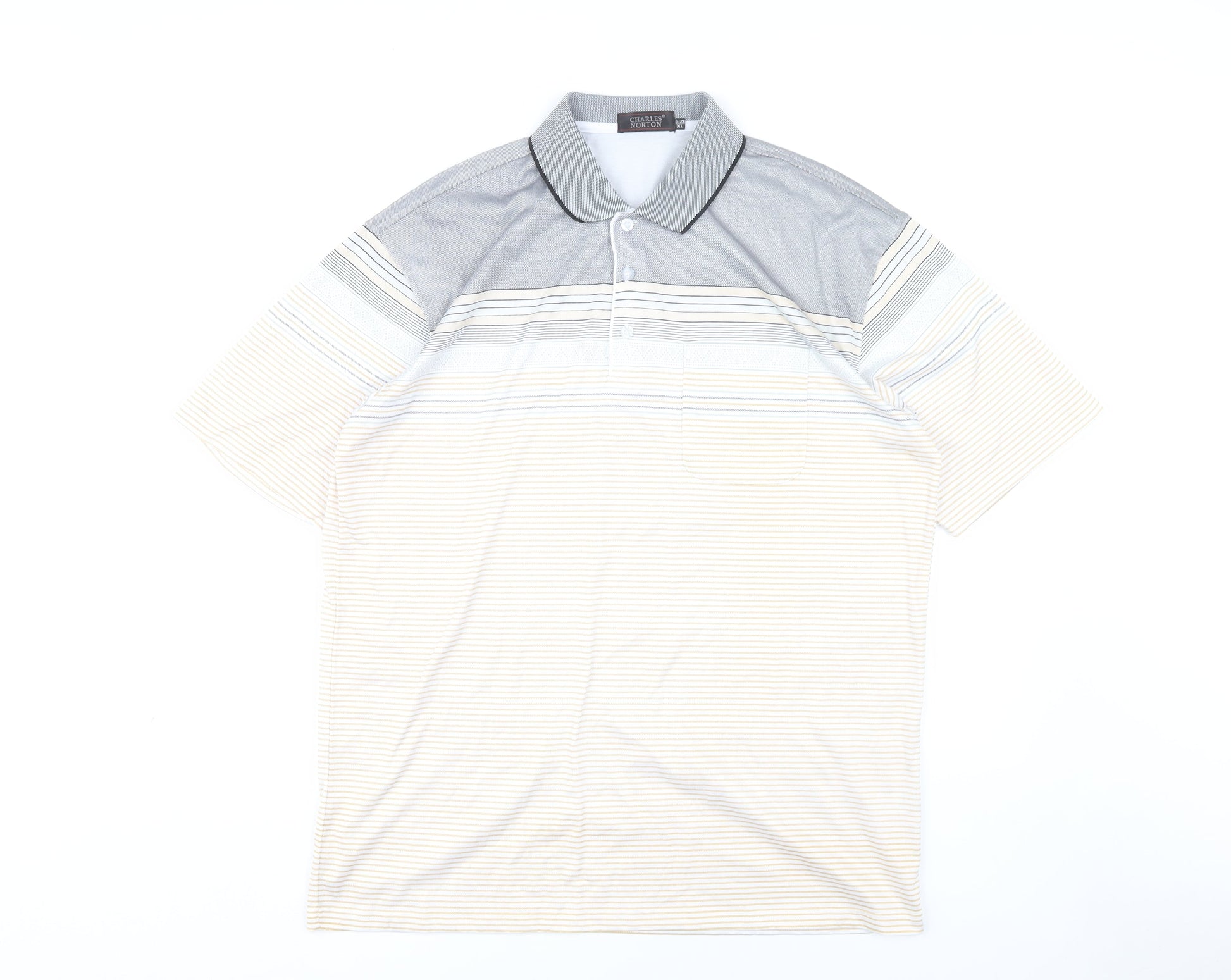 Charles Norton Men’s XL Grey Beige Striped Polo Shirt
