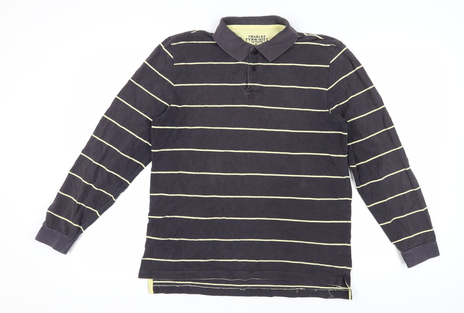 Charles Tyrwhitt Men's Black Striped Polo Shirt L