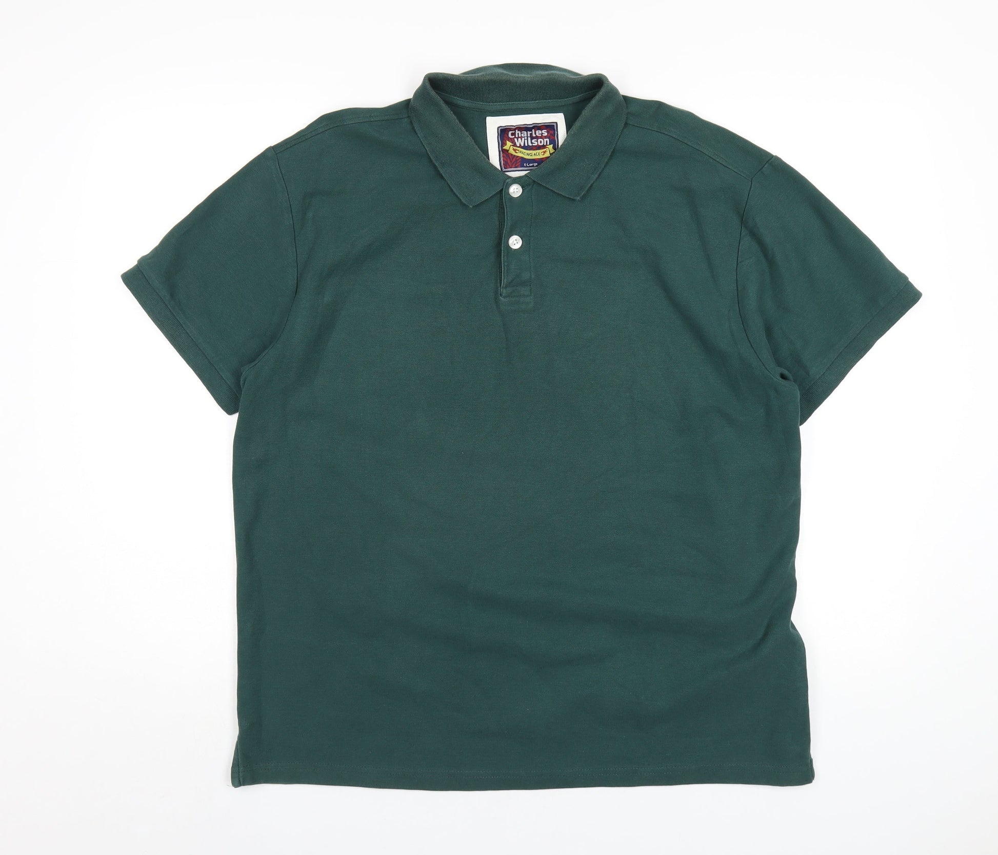 Charles Wilson Mens Green Cotton Polo Size XL Collared Button