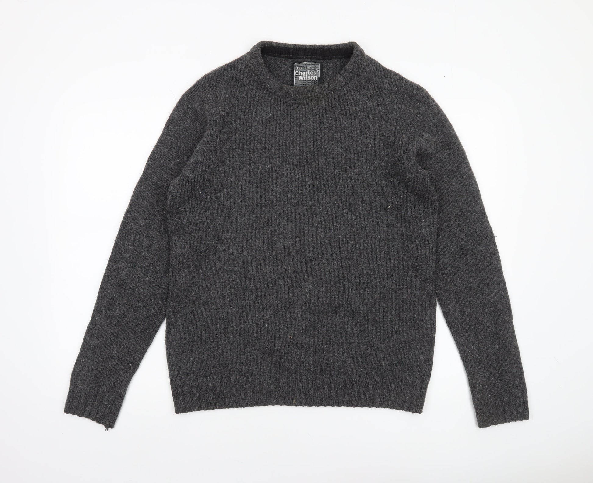 Charles Wilson Men's Grey Wool Cotton Crew Neck Jumper Size M
