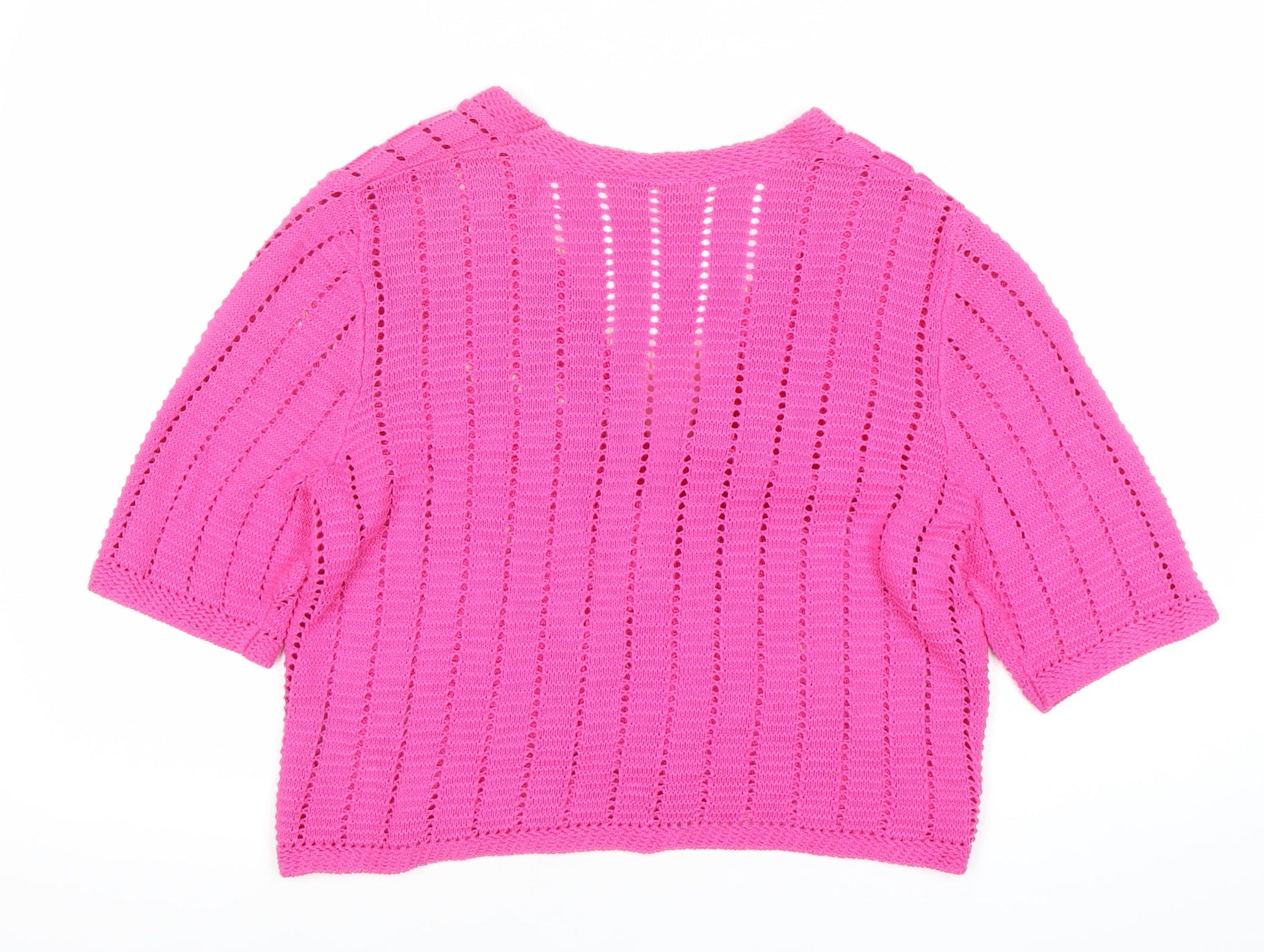 Charter Club Women’s Pink Open Knit Cotton Cardigan XL