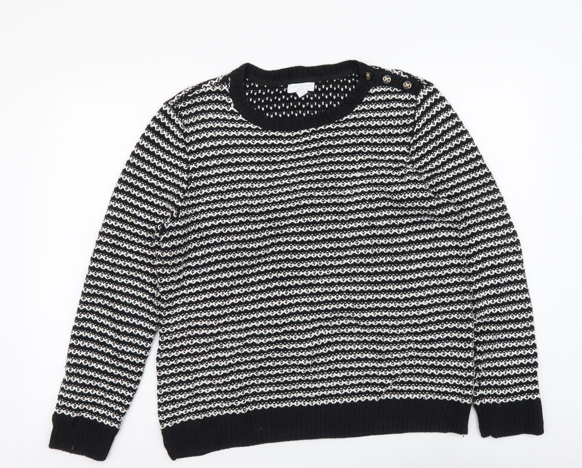 Charter Club Womens Black Round Neck Striped Acrylic Henley Jumper Size XL