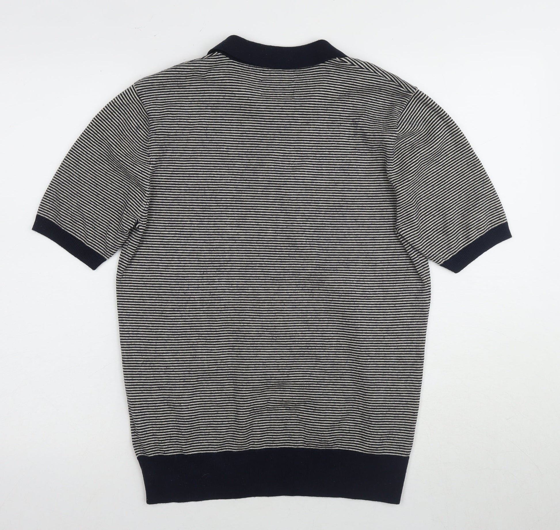 Christiano Baldinucci Men's Grey Striped Polo Shirt M