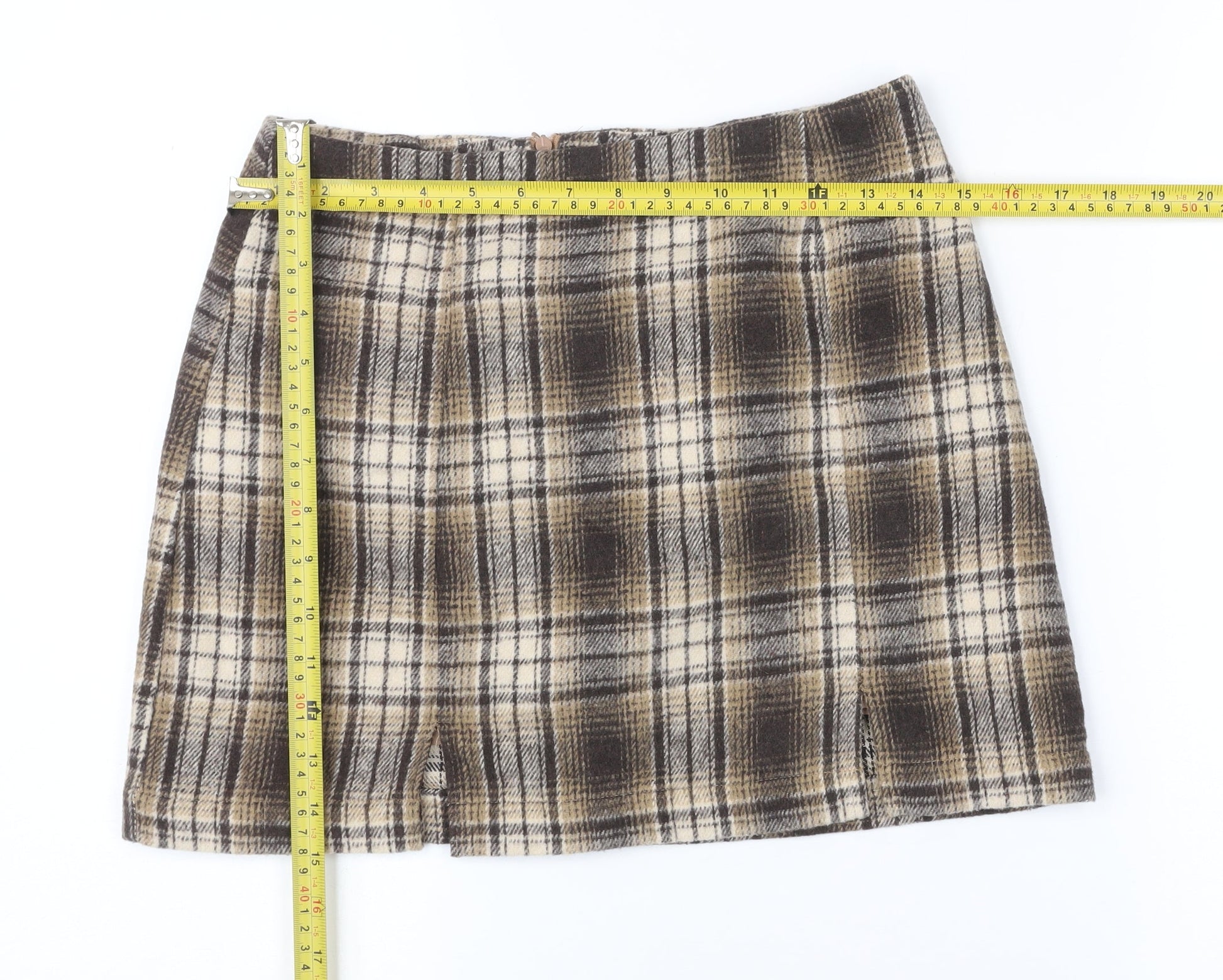 Cider Women Brown Plaid Tweed Mini Skirt Size S Straight Lined