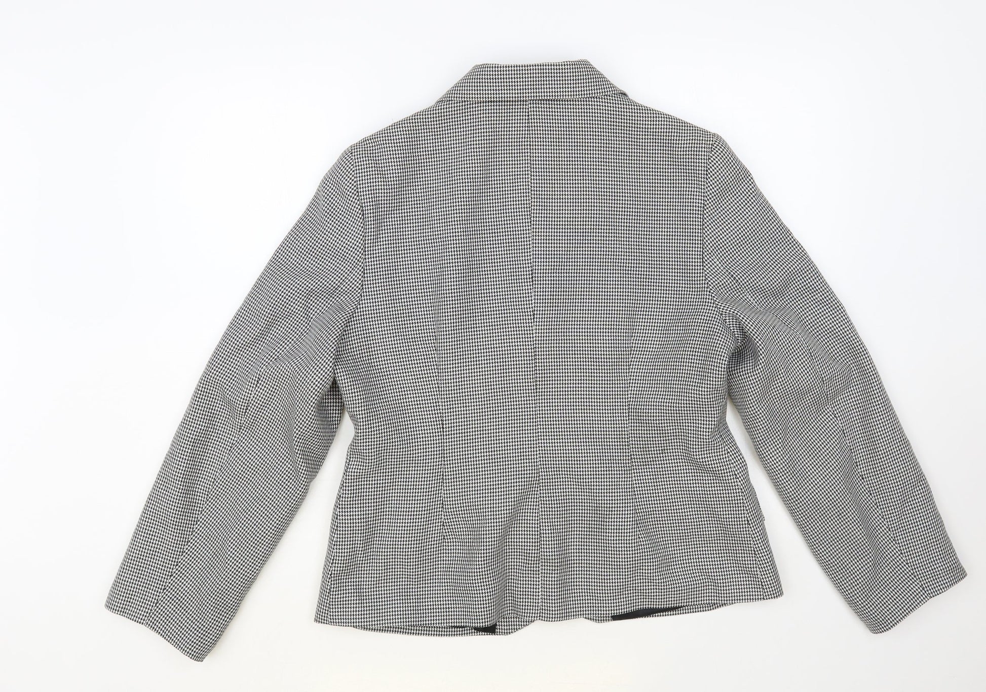 Classic Woman Womens Black Geometric Jacket Blazer Size 14 Button