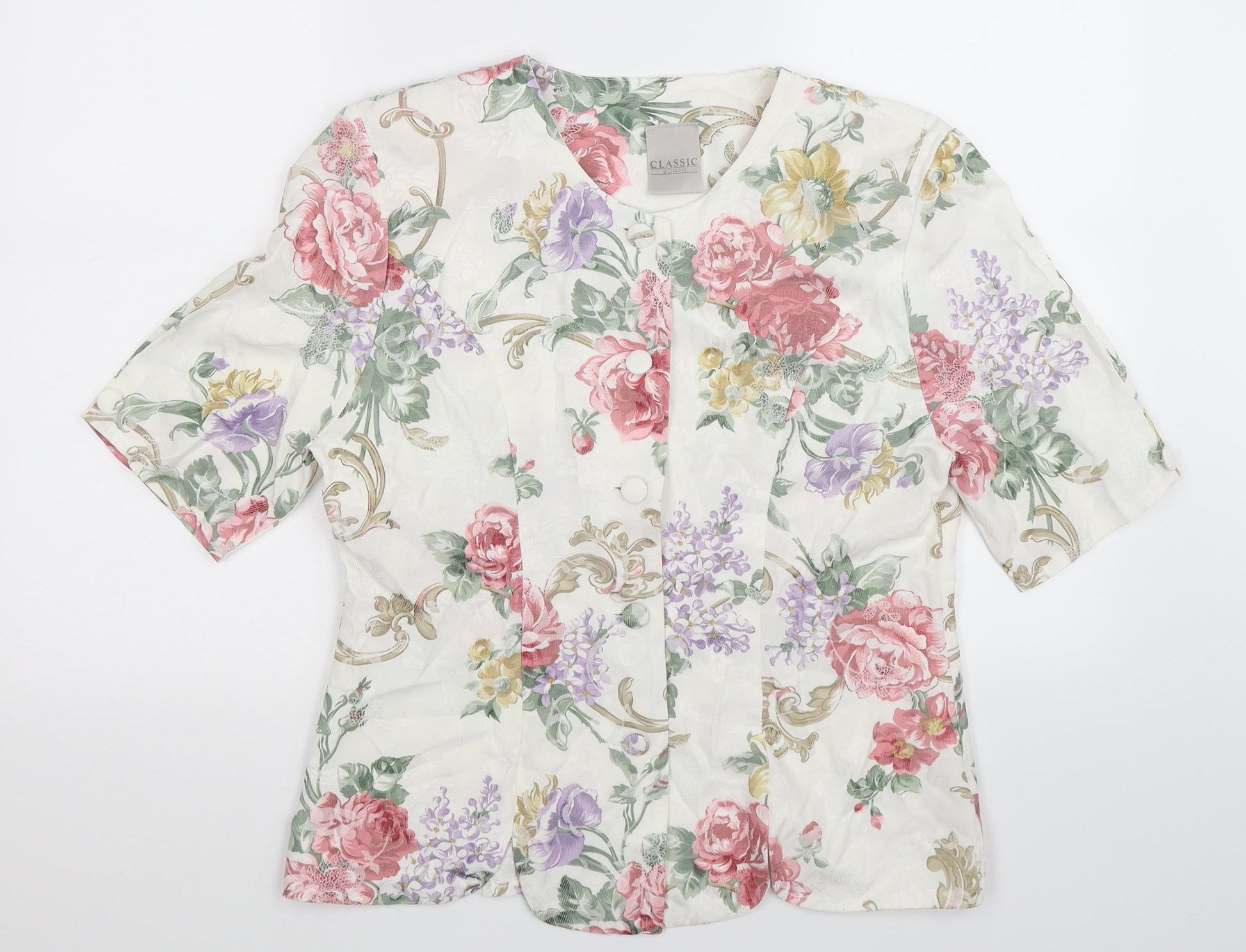 Classic Woman Womens White Floral Jacket Suit Jacket Size 14