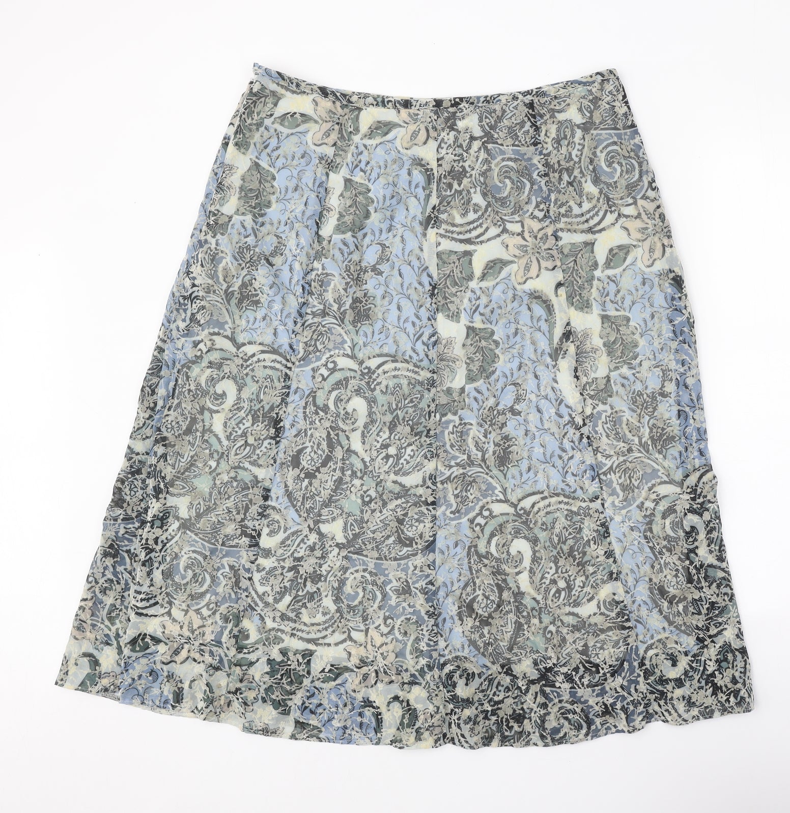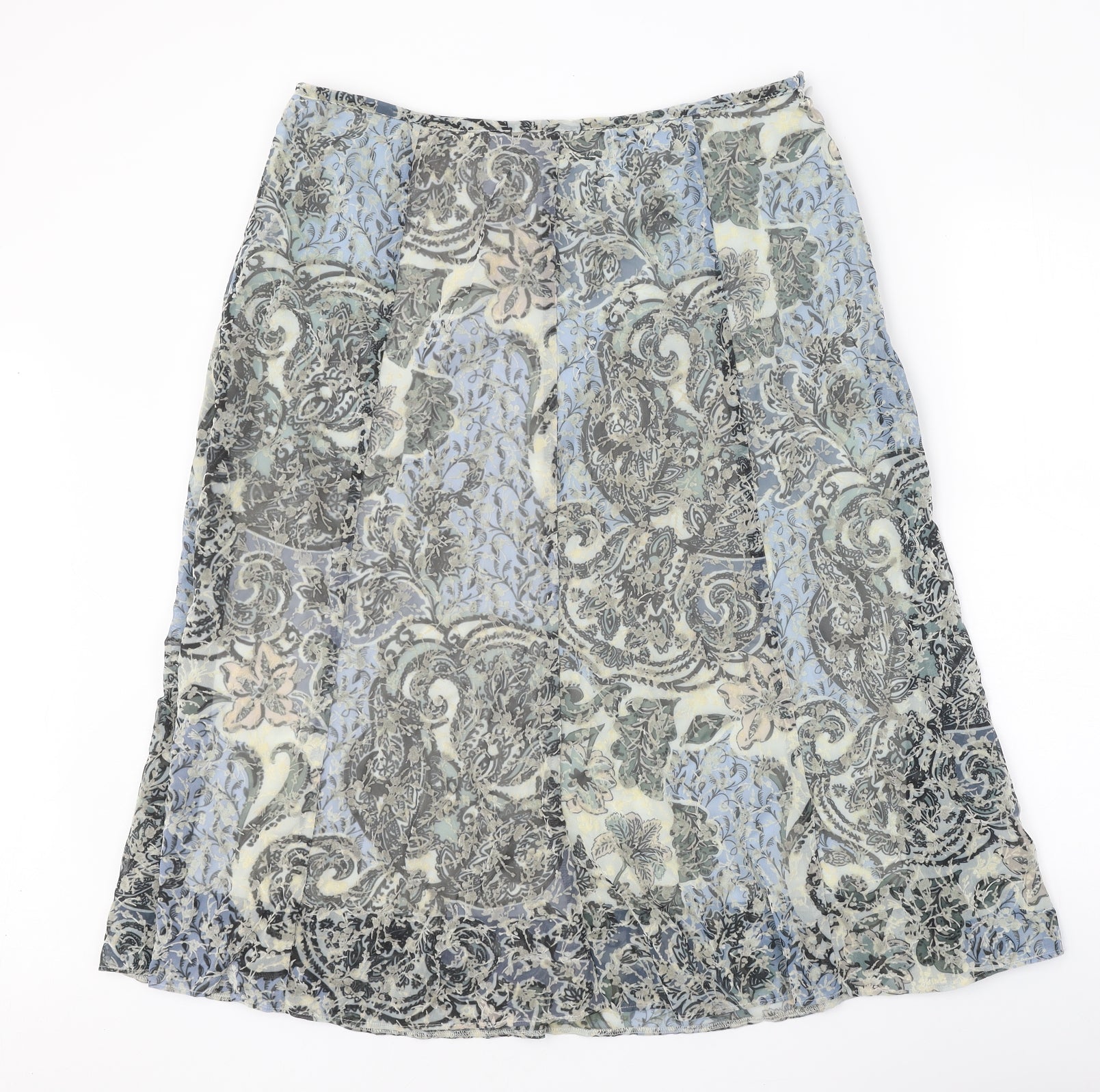 Classic Womens Beige Geometric Polyester Swing Skirt Size 14 Zip