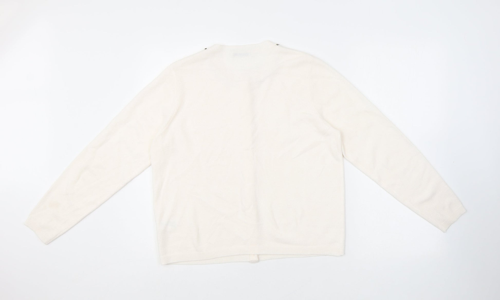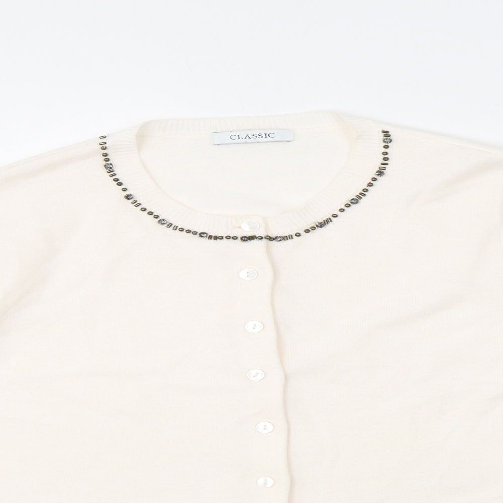 Classic Womens Beige Round Neck Acrylic Cardigan Jumper Size 12