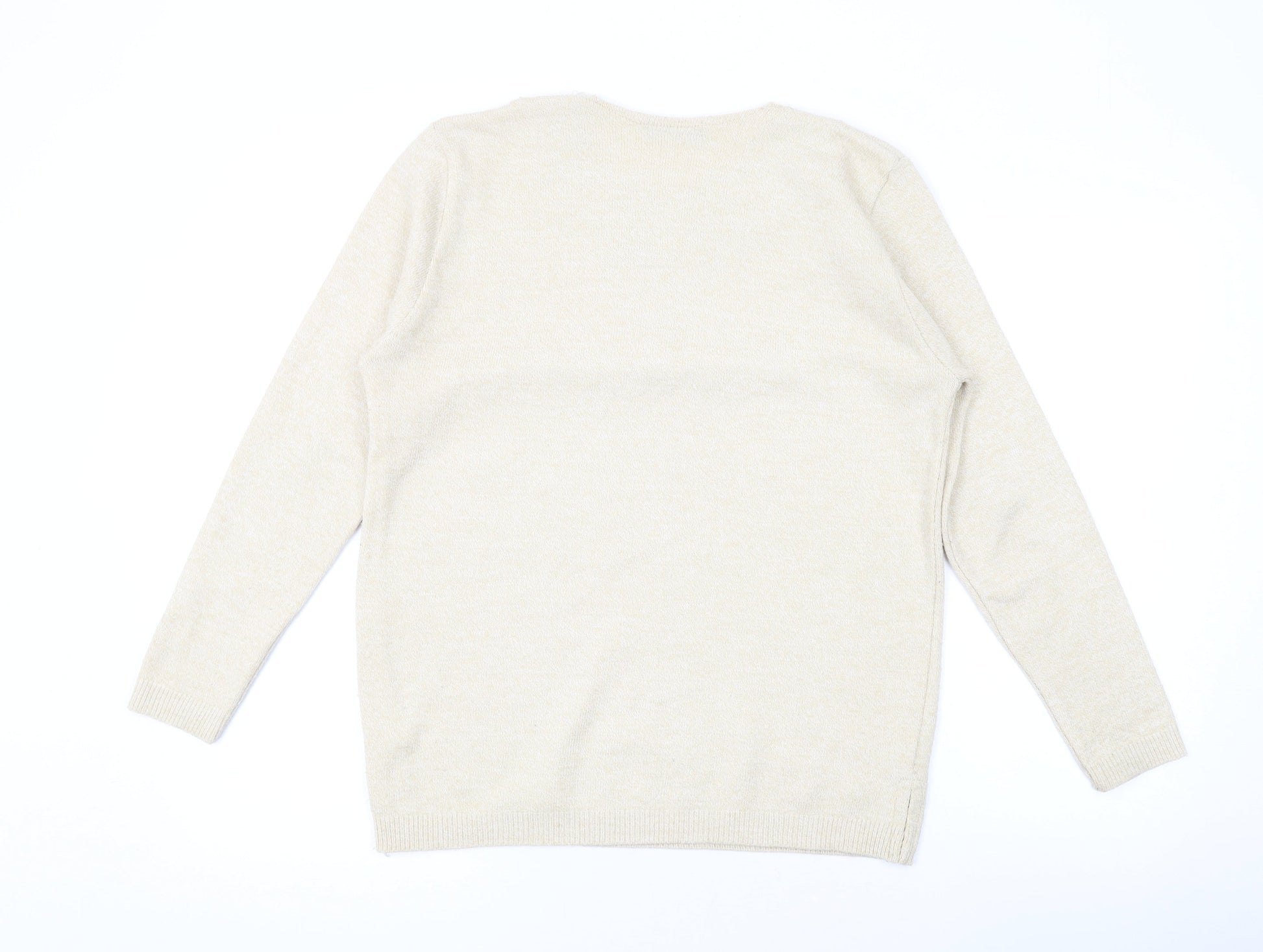 Classic Womens Beige Round Neck Acrylic Pullover Jumper Size M