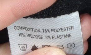 - Material Breakdown: 76% Polyester 19% Viscose 5% Elastane