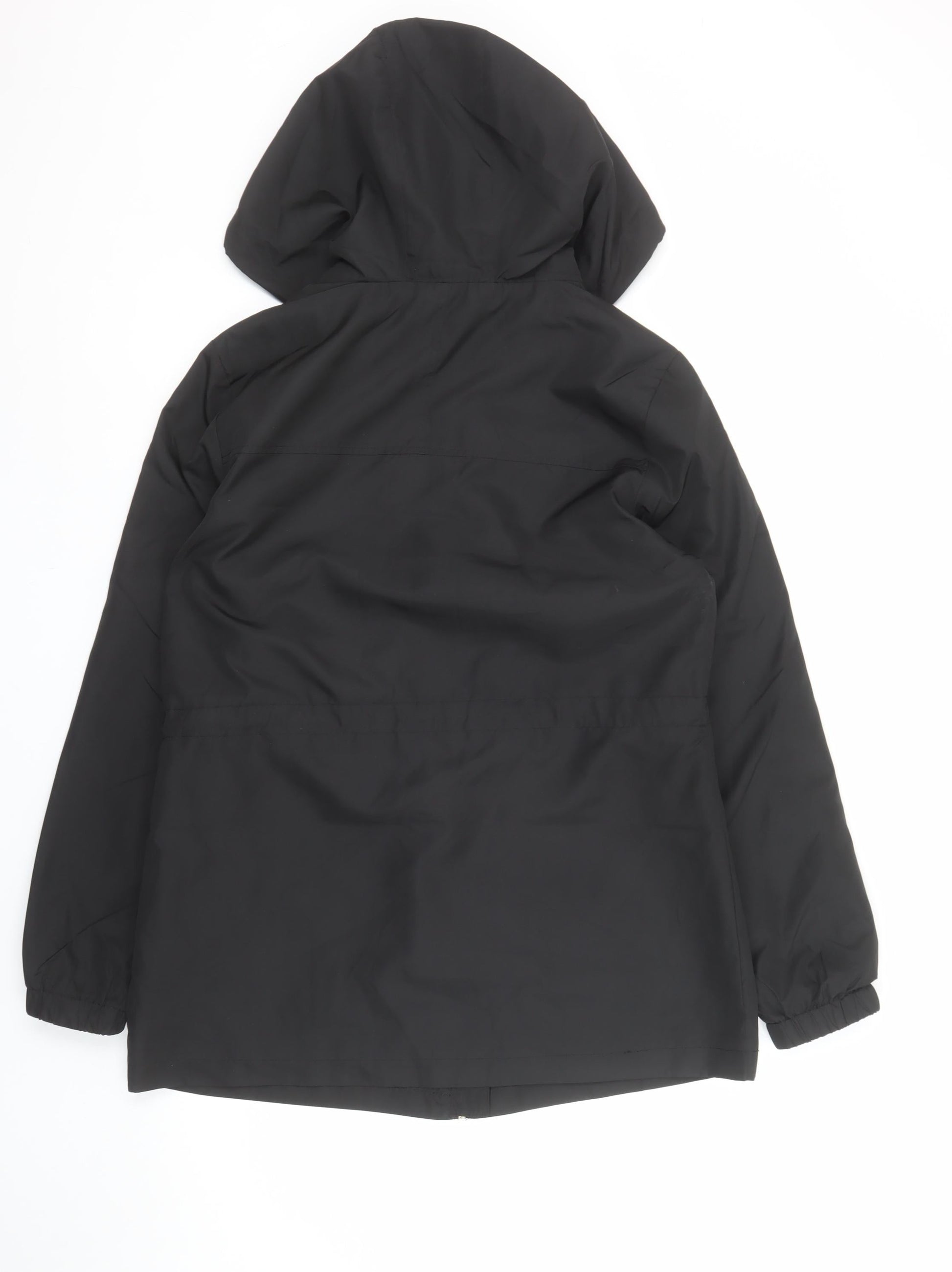 Classic Womens Black Hooded Anorak Jacket Size 12 Mid-Length Polyester