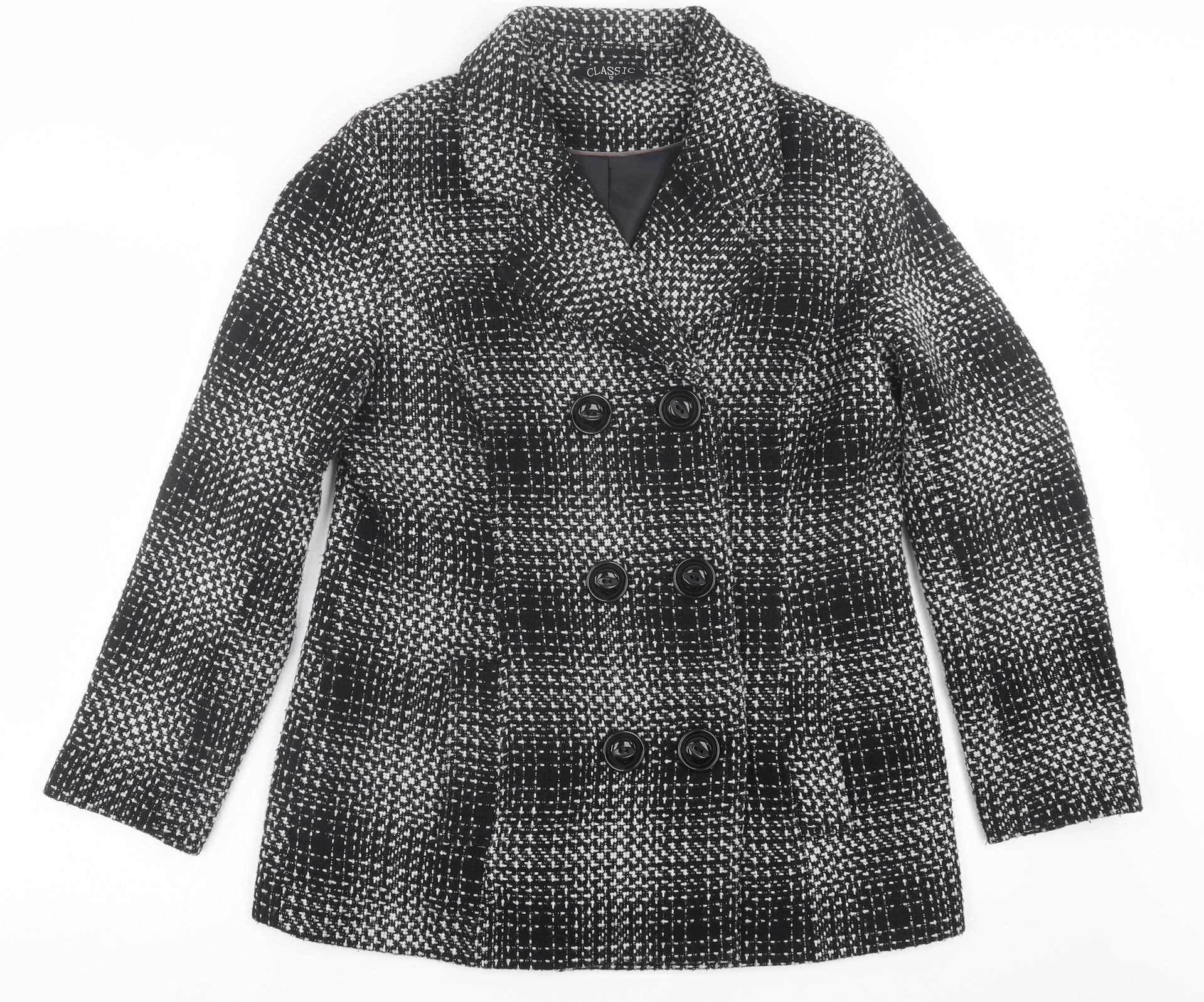 Classic Womens Black Plaid Jacket Size 12 Button