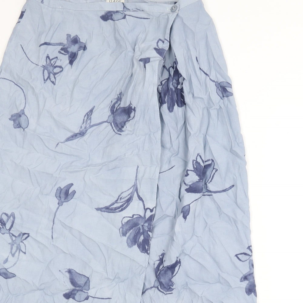 Classic Womens Blue Floral Viscose A-Line Skirt Size 18 Button