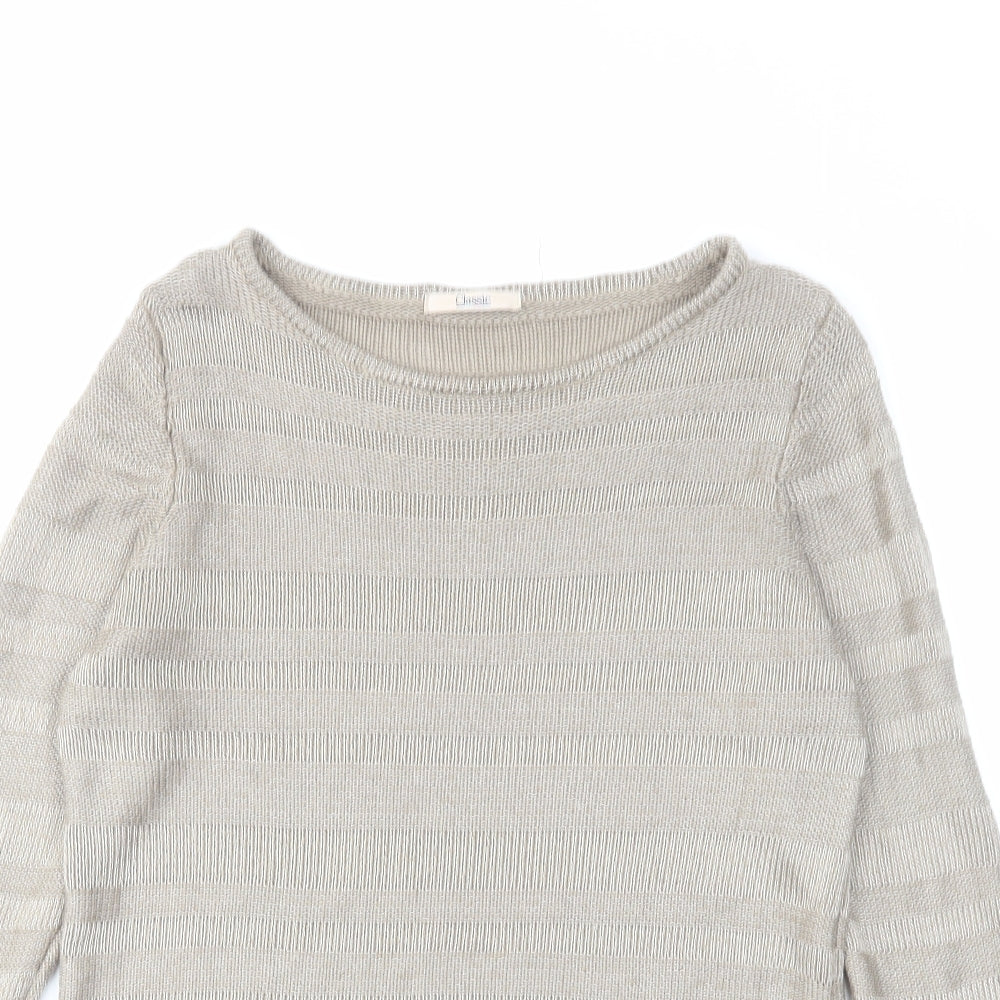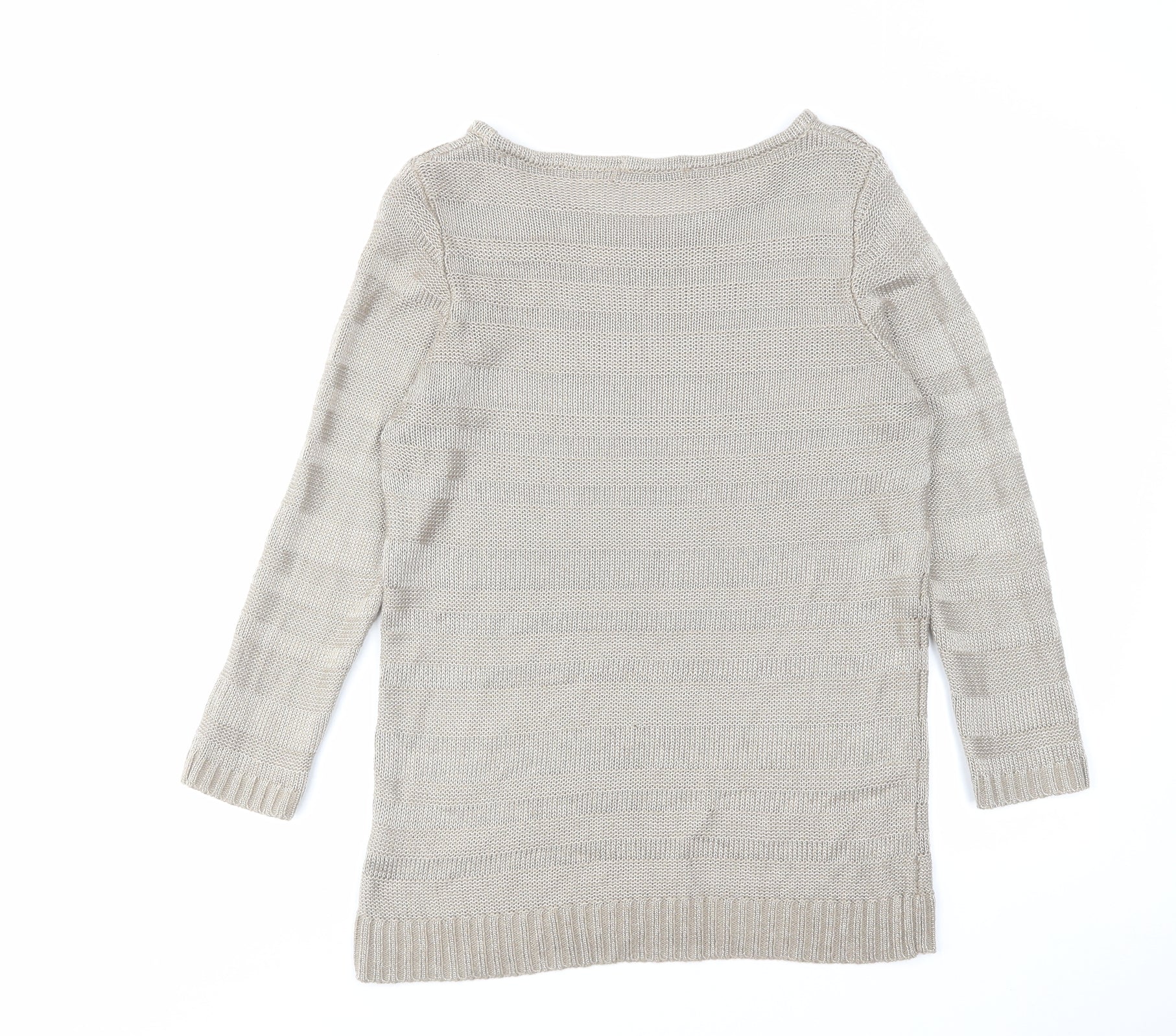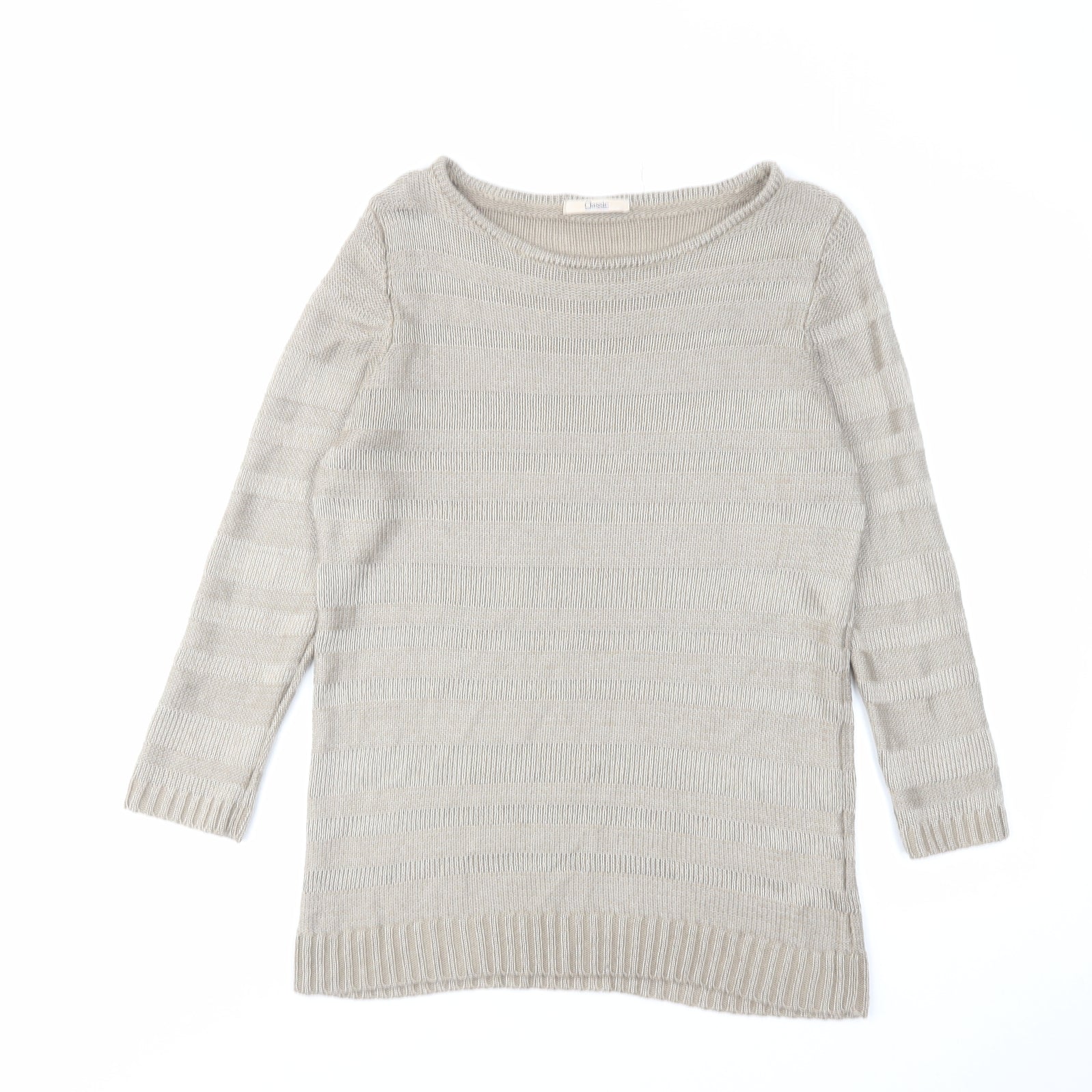 Classic Womens Brown Boat Neck Acrylic Pullover Jumper Size 10