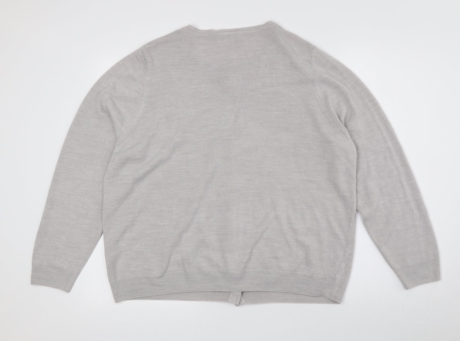 Classic Womens Grey Crew Neck Acrylic Cardigan Jumper Size 24