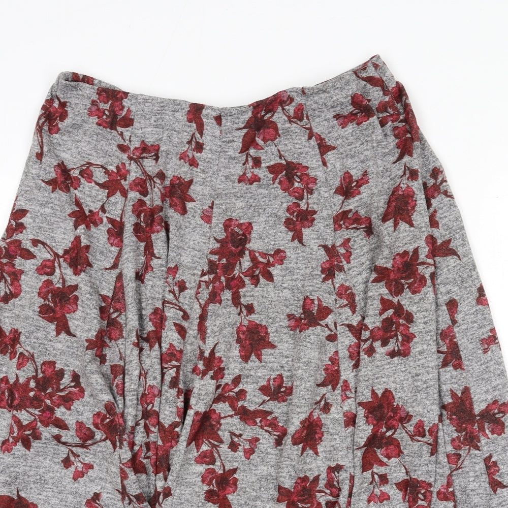 Classic Womens Grey Floral Polyester Flare Skirt Size 14