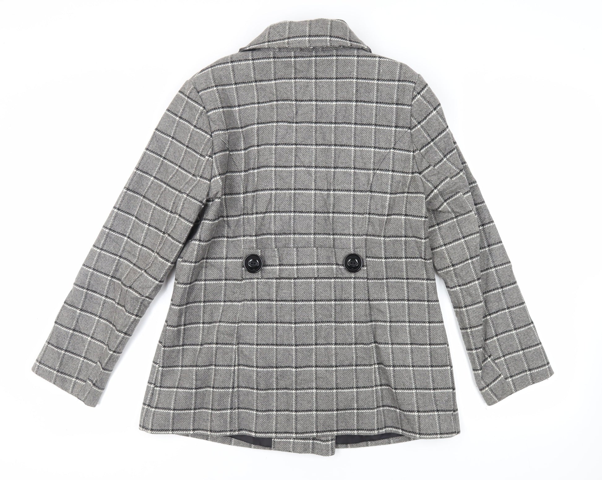 Classic Womens Grey Plaid Pea Coat Coat Size 14 Button