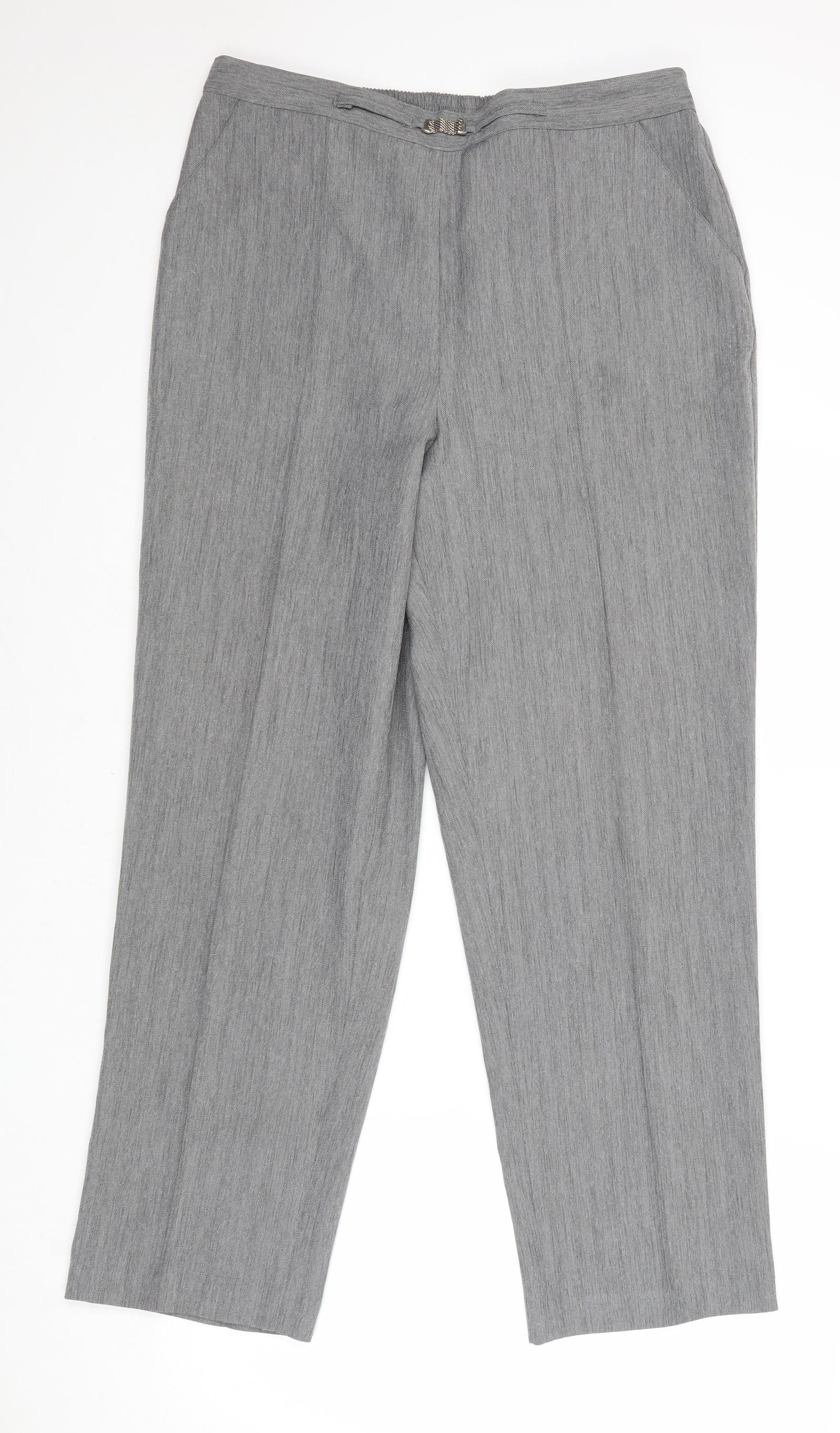 Classic Womens Grey Polyester Trousers Size 16 Regular