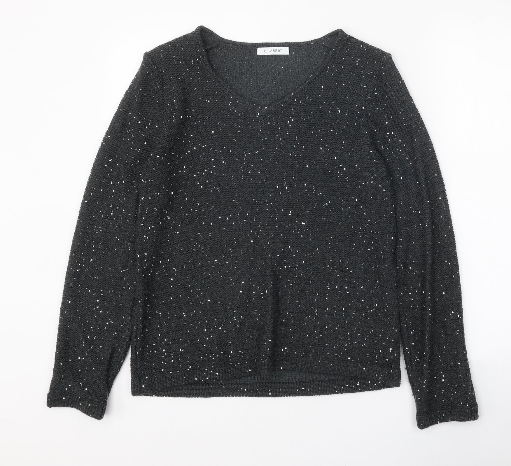 Classic Womens Grey V-Neck Acrylic Pullover Jumper Size 12