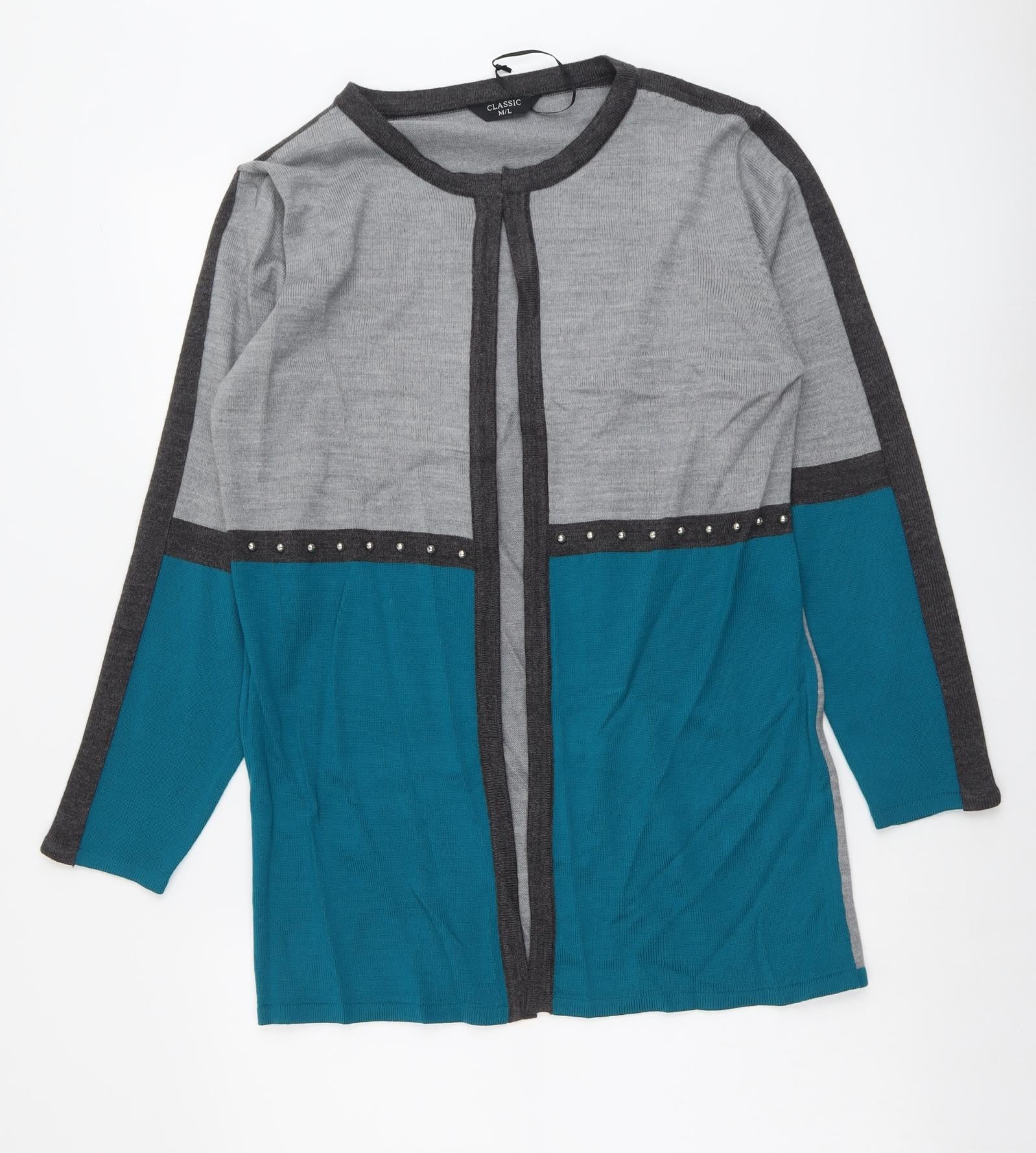 Classic Womens Multicoloured Round Neck Acrylic Cardigan Jumper Size M
