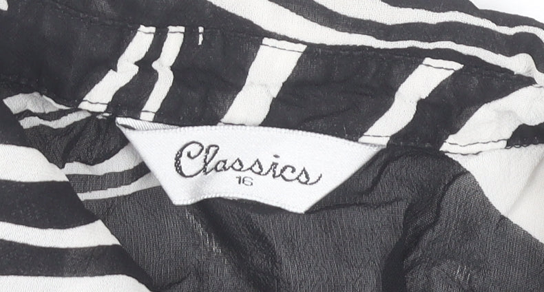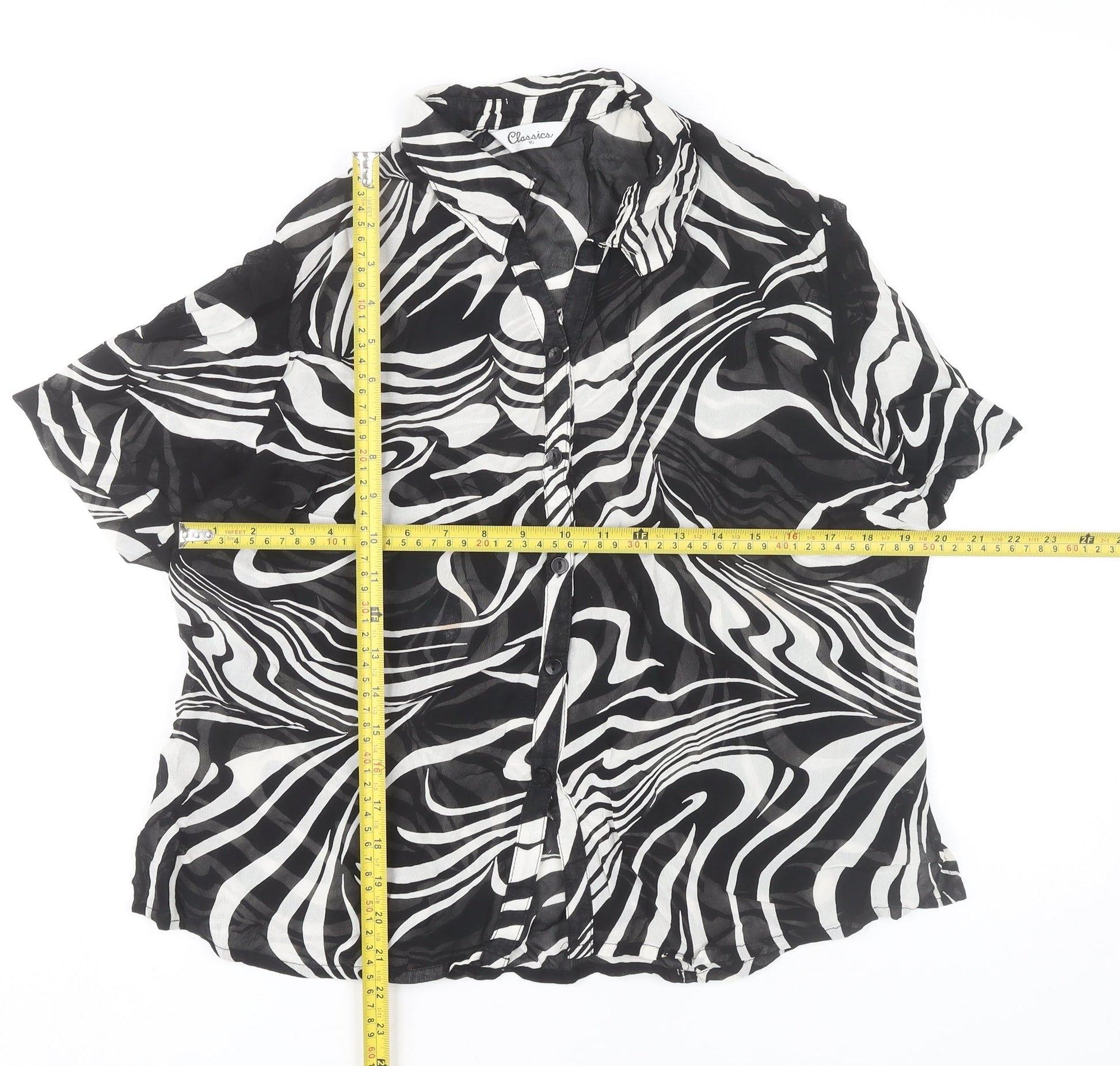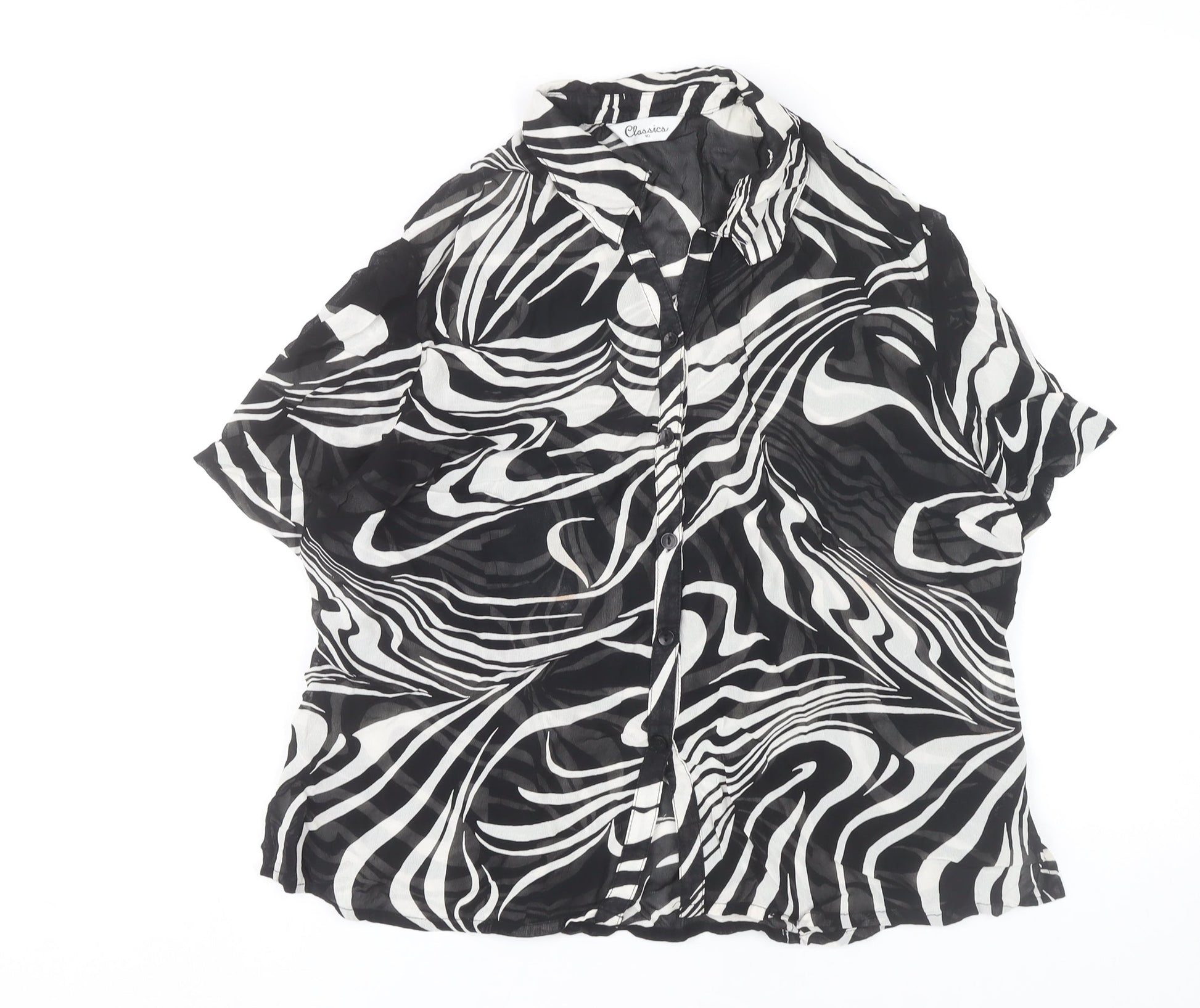 Classics Women Black White Animal Print Button-Up Shirt Size 16