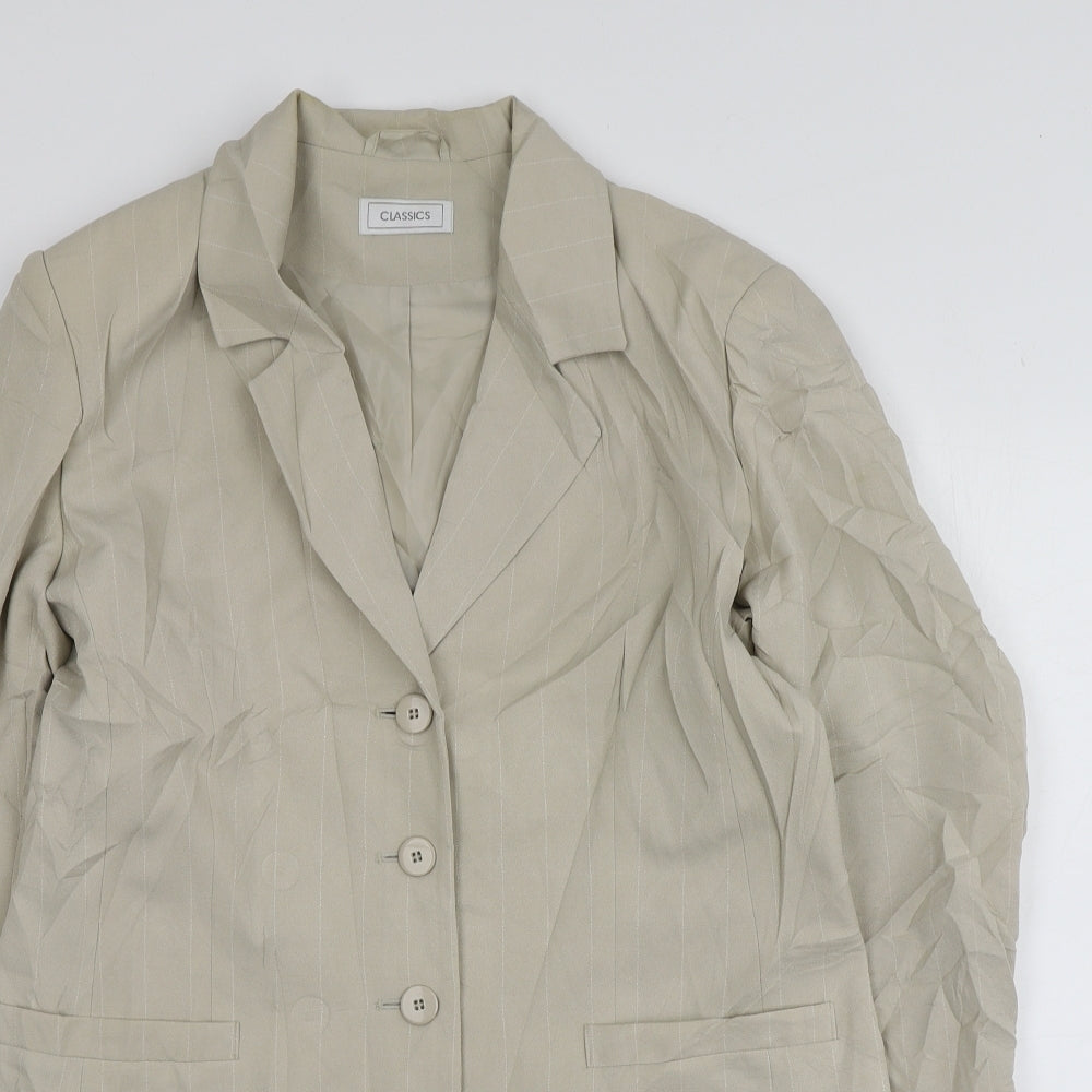 Classics Womens Beige Striped Polyester Jacket Blazer Size 14