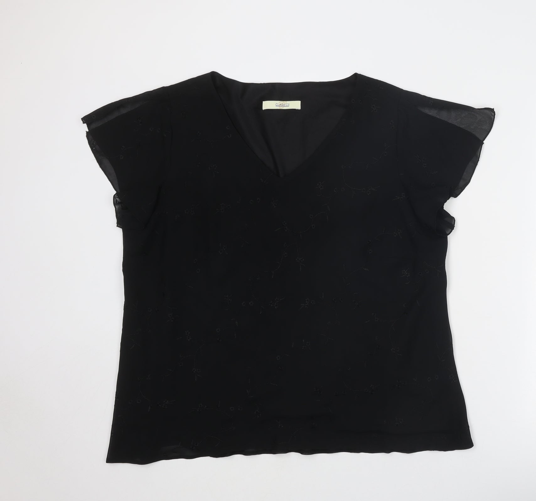 Classics Womens Black Polyester Basic T-Shirt Size 20 V-Neck
