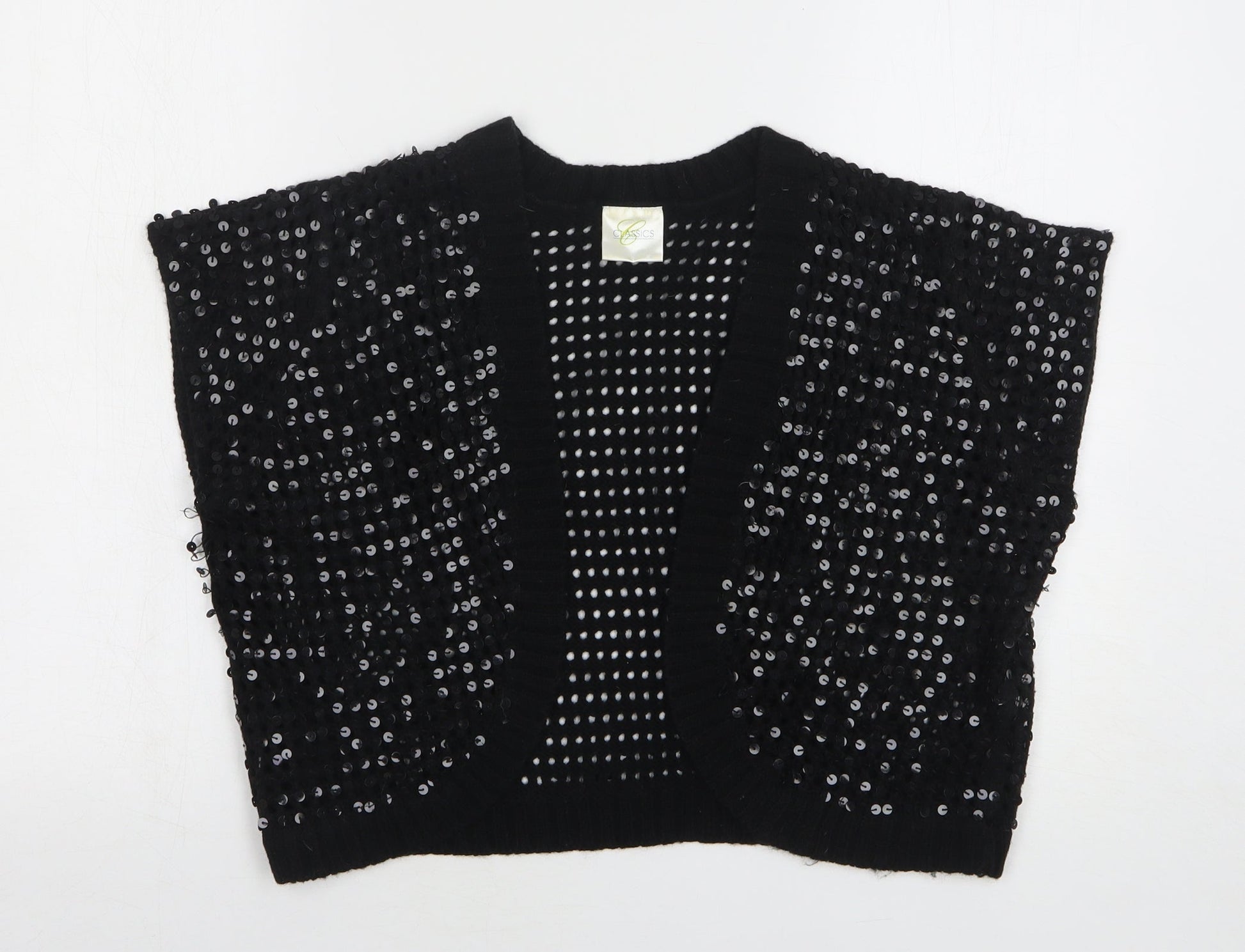 Classics Womens Black V-Neck Acrylic Shrug Jumper Size 16