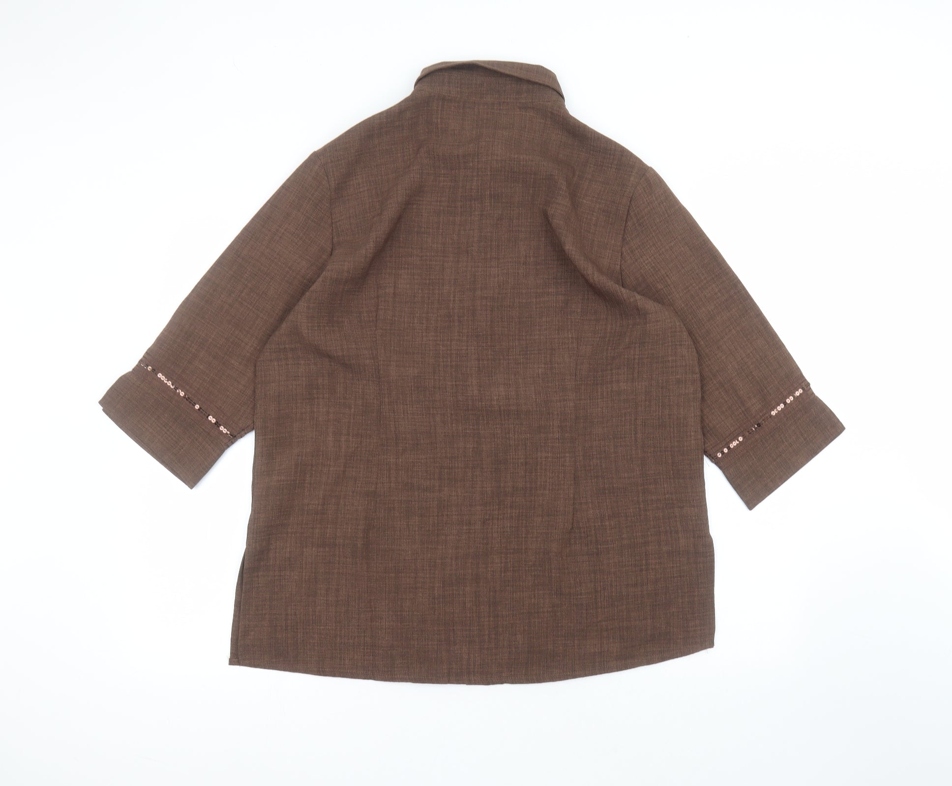 Classics Womens Brown Polyester Basic Button-Up Size 16 Collared