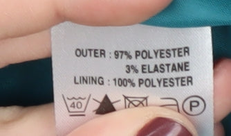 - Material Breakdown: 97% Polyester 3% Elastane