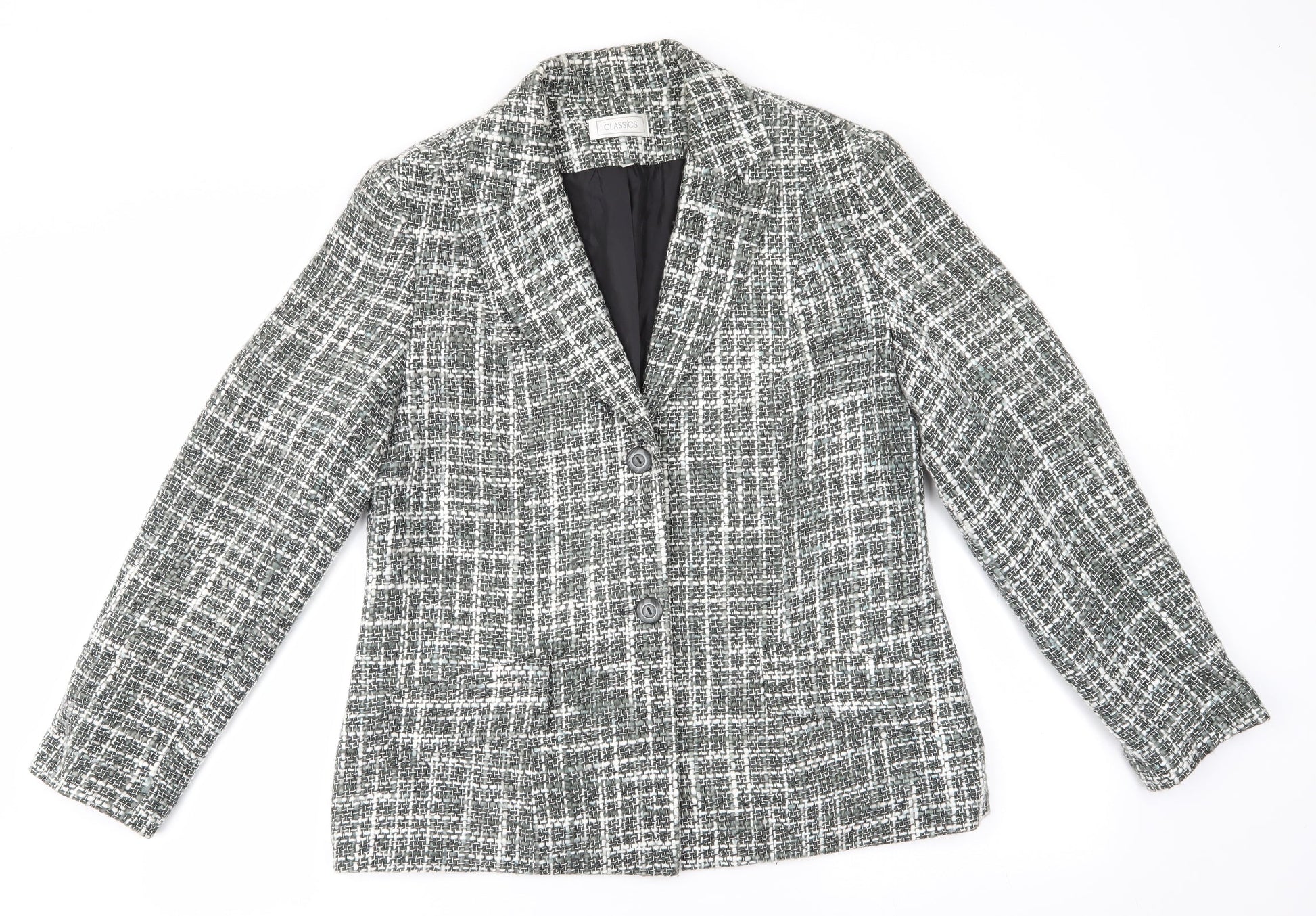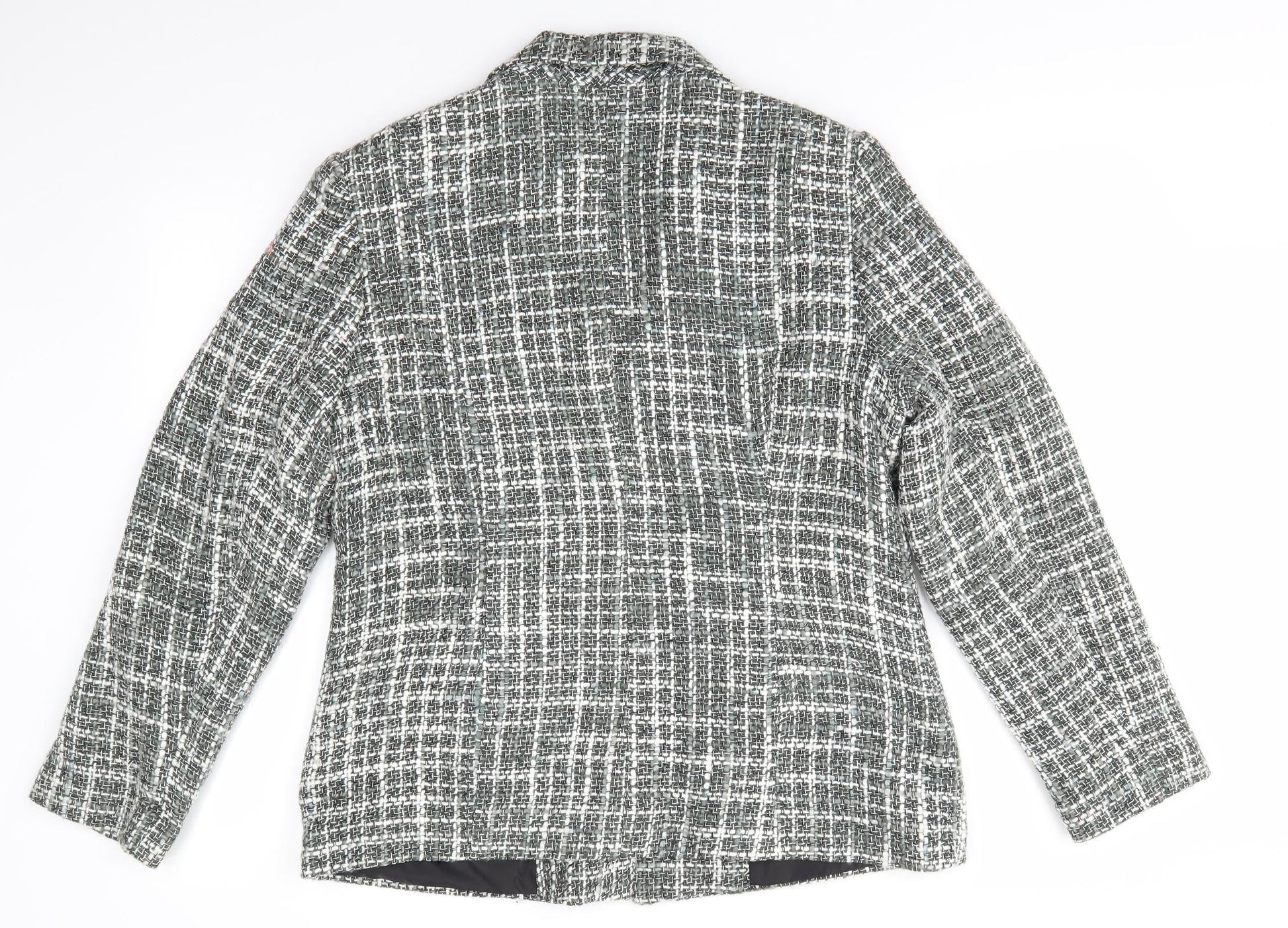 Classics Womens Green Check Jacket Size 14 Button - Green Mix Heavy Hessian like fabric
