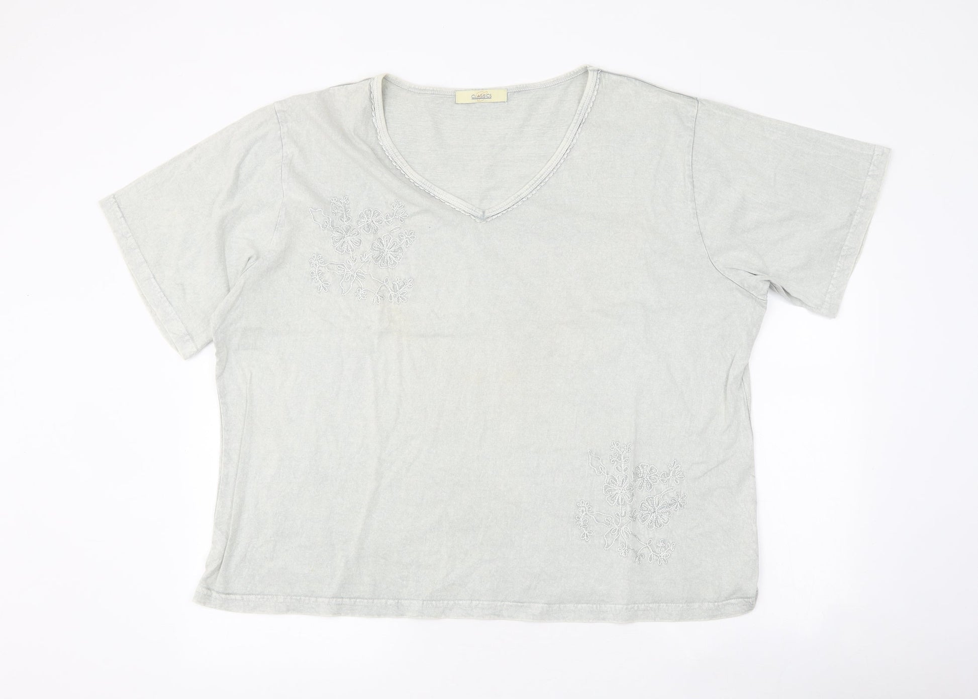 Classics Womens Grey Cotton Basic T-Shirt Size L V-Neck