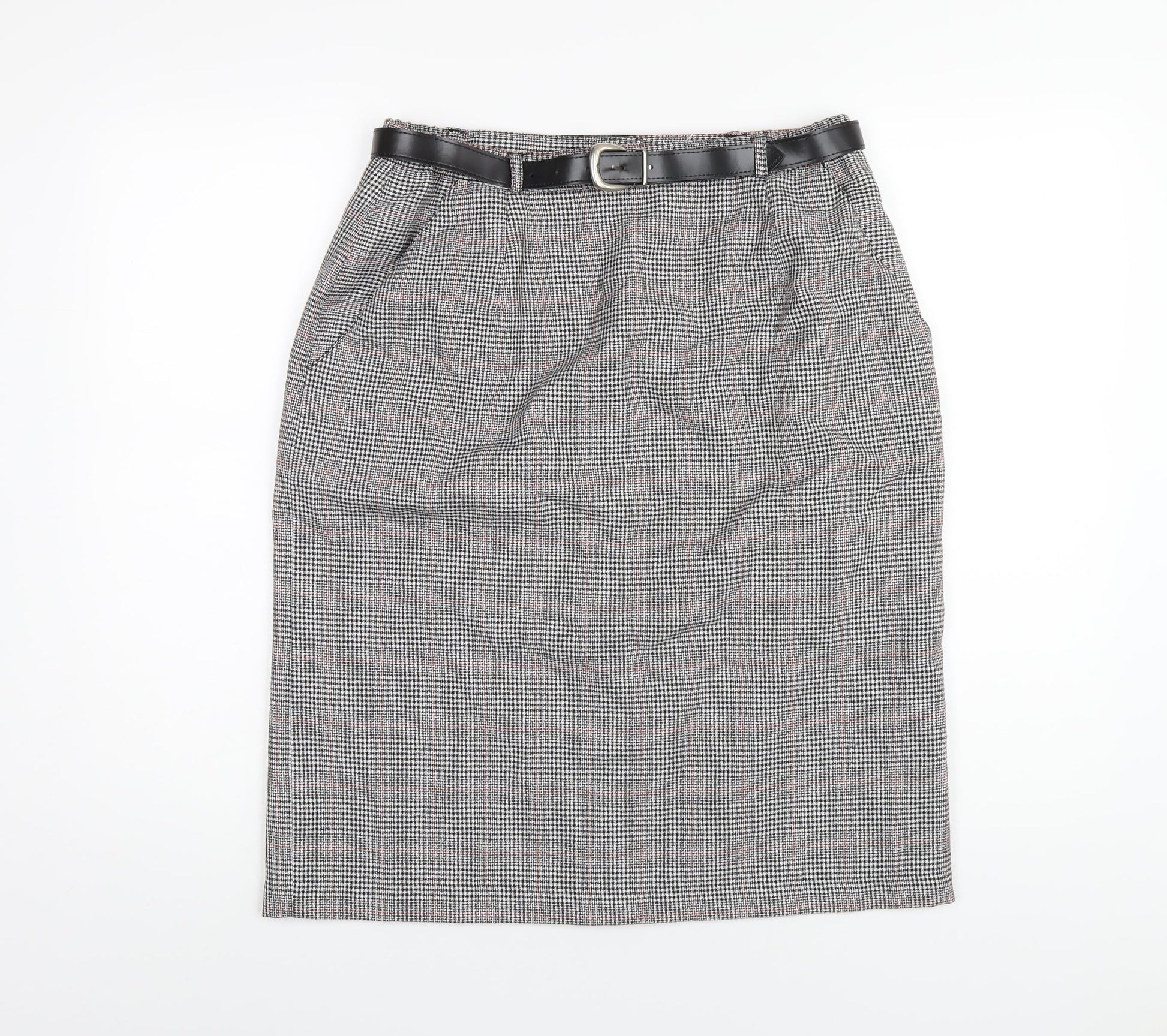 Classics Womens Grey Plaid Polyester Straight & Pencil Skirt Size 16 Zip